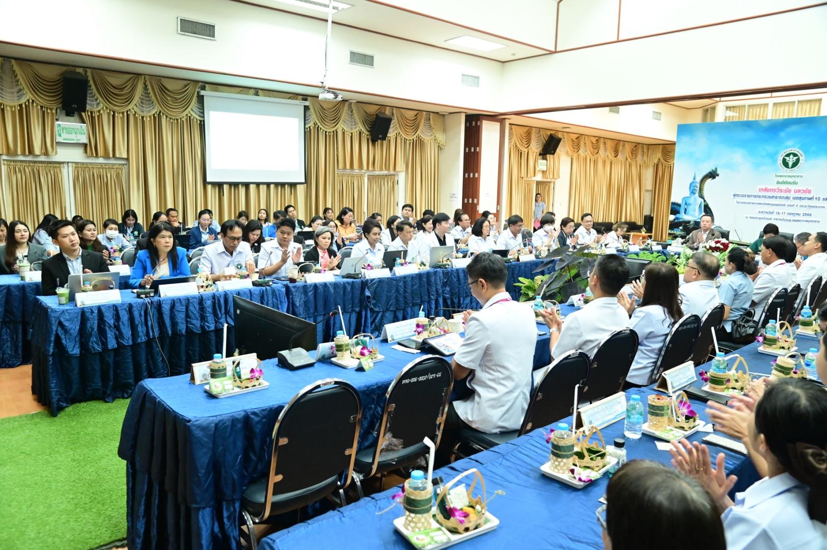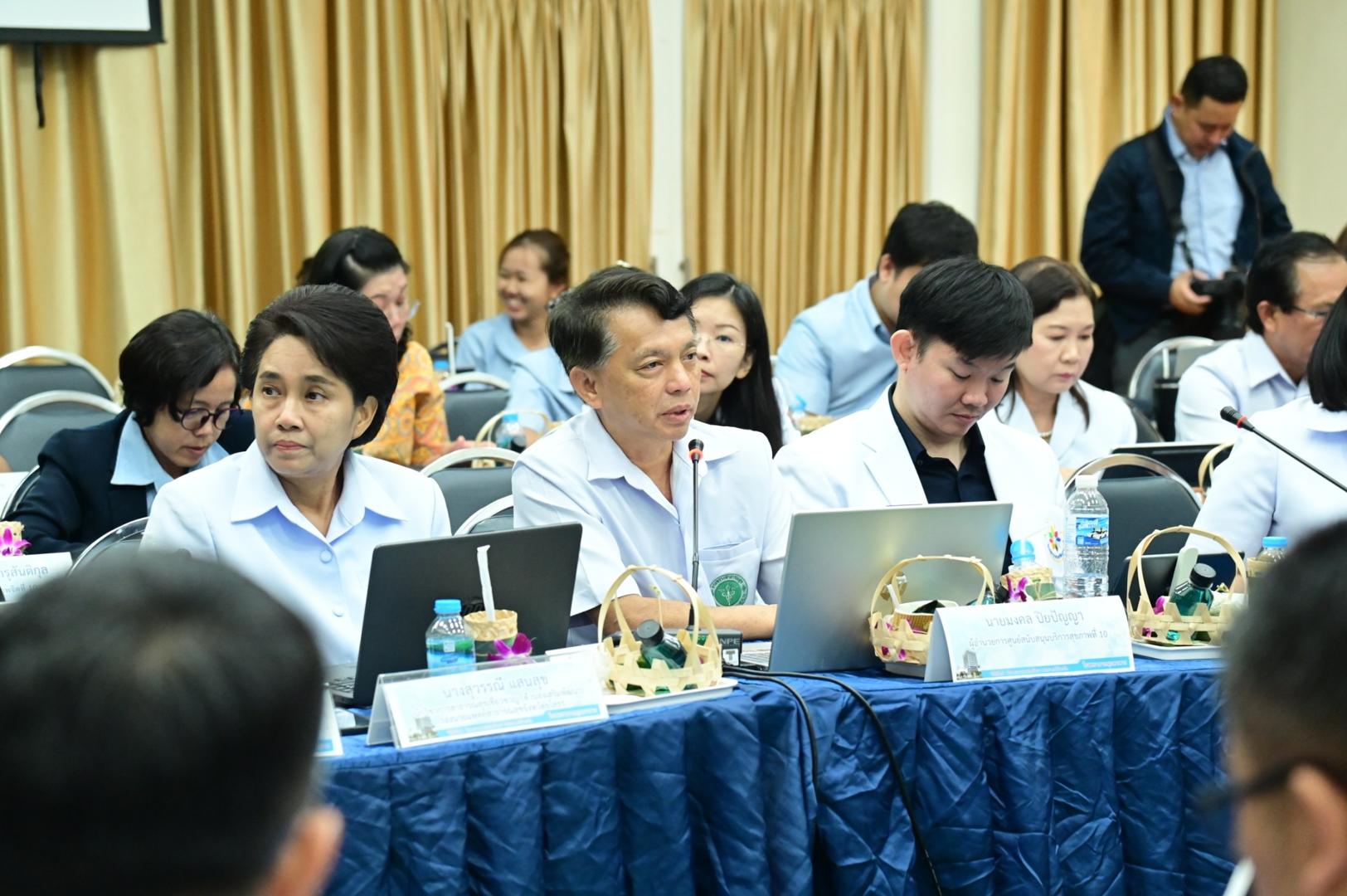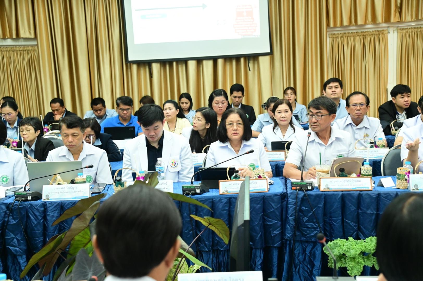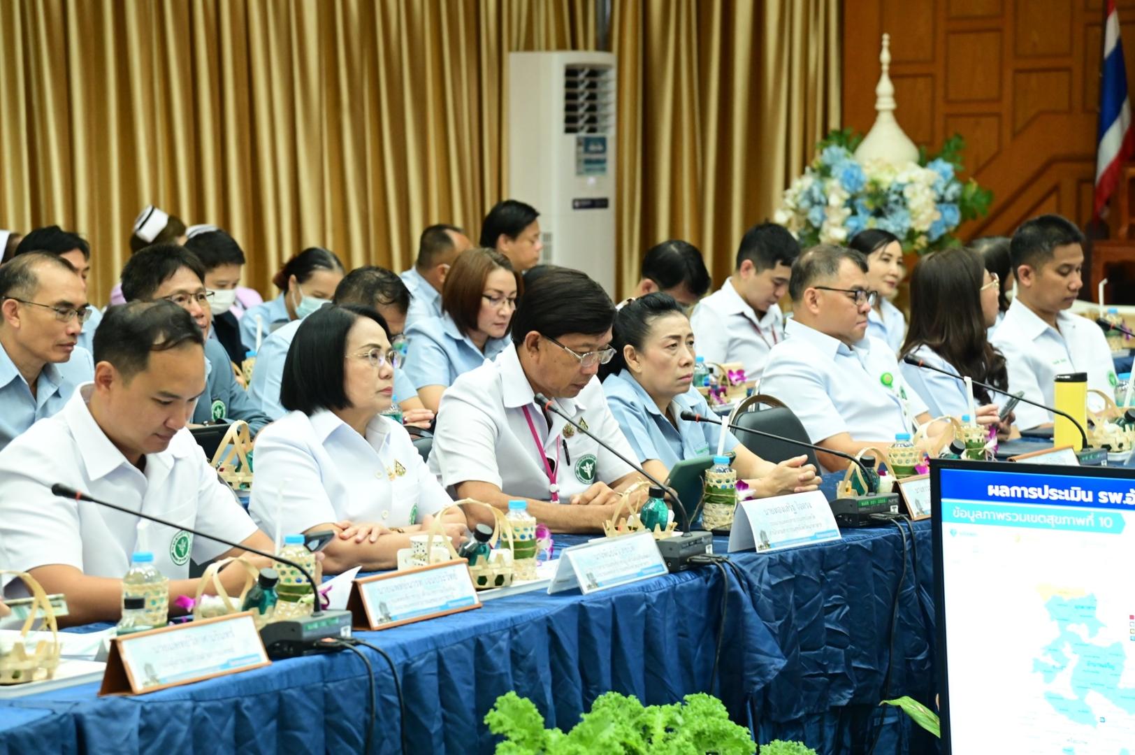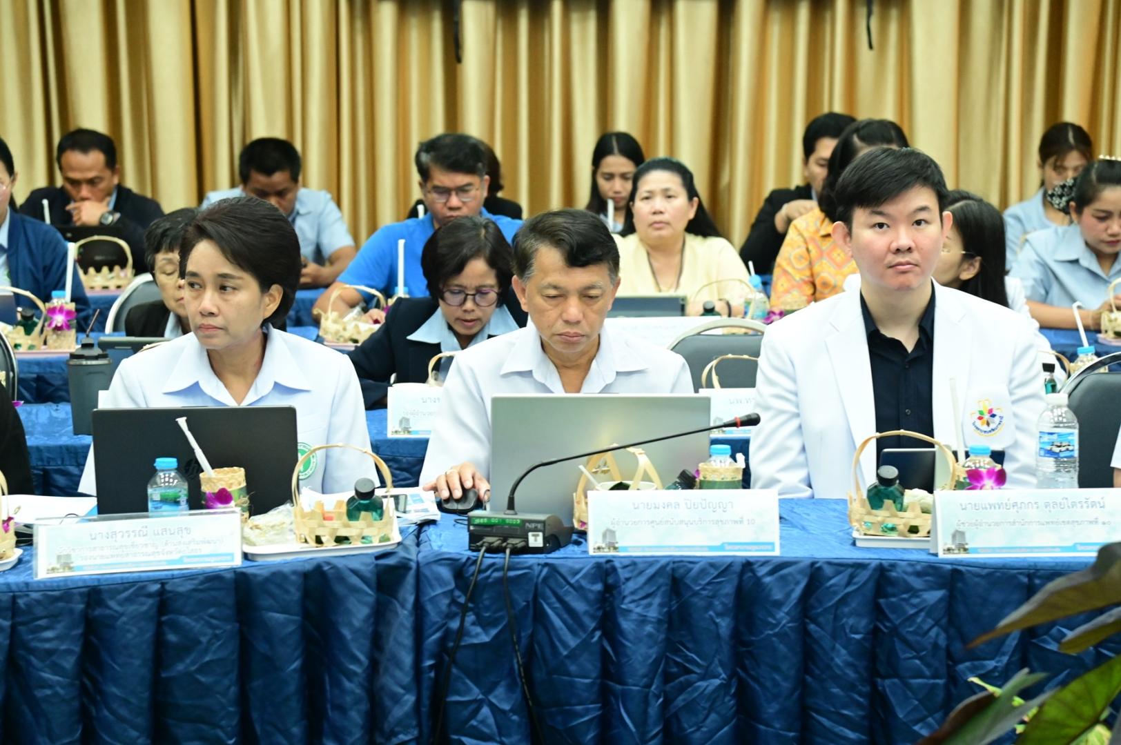 โดยมีเภสัชกรวีระชัย นลวชัย ผู้ตรวจราชการกระทรวงสาธารณสุข เขตสุขภาพที่ 10 พร้อมด้วยแพทย์หญิงอุไรวรรณ จำนรรจ์สิริ สาธารณสุขนิเทศก์ ผู้อำนวยการสำนักงานเขตสุขภาพที่ 10 และคณะผู้บริหาร บุคลากรในสังกัดกระทรวงสาธารณสุข ร่วมประชุมในครั้งนี้