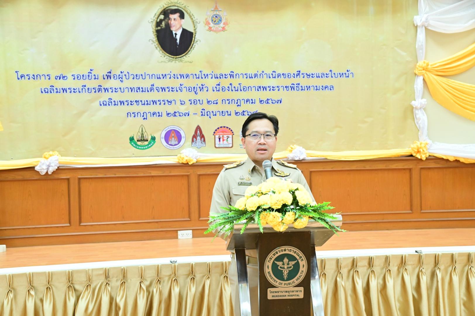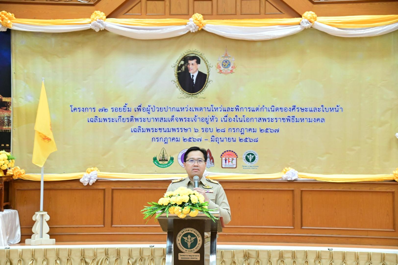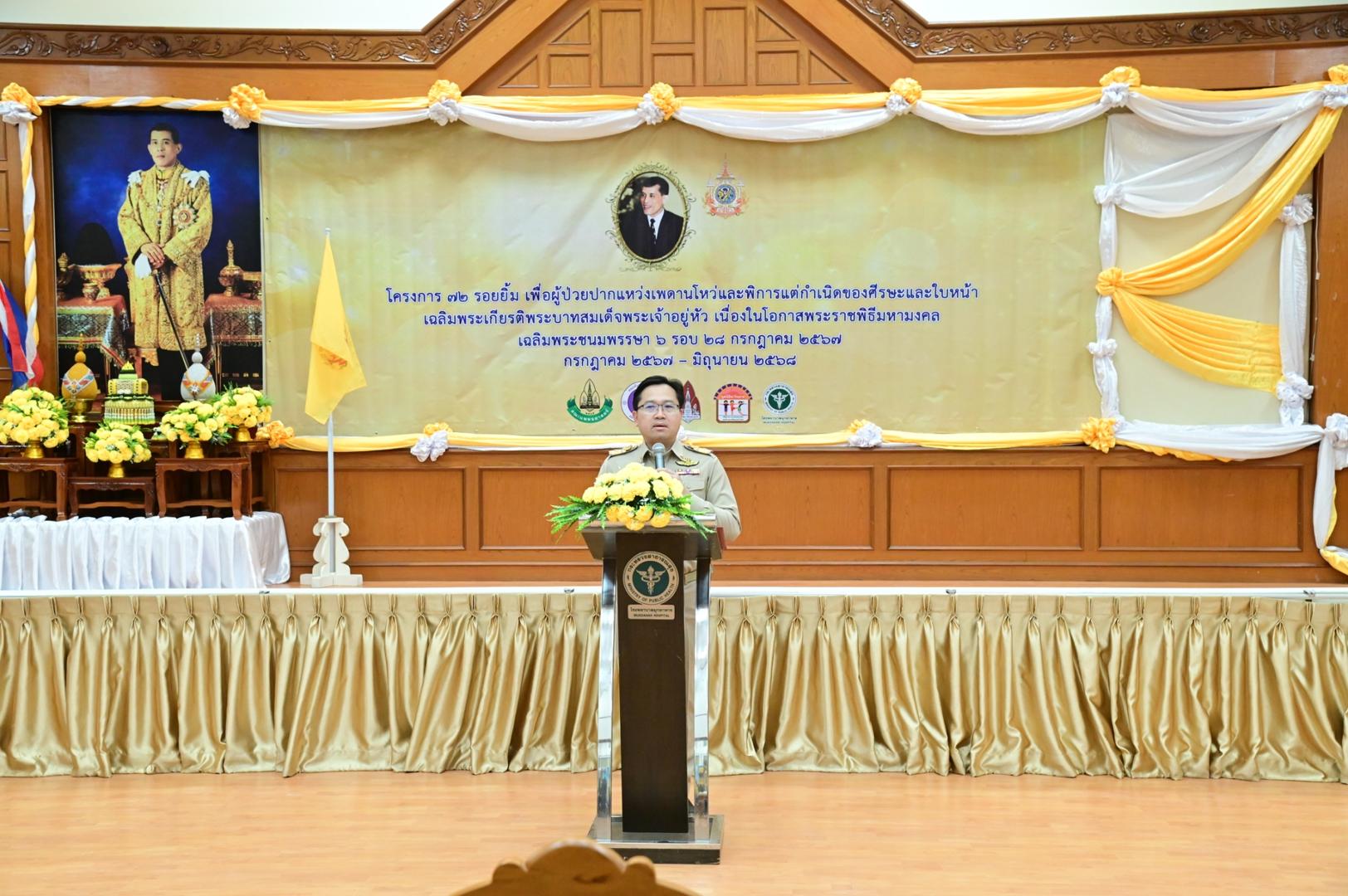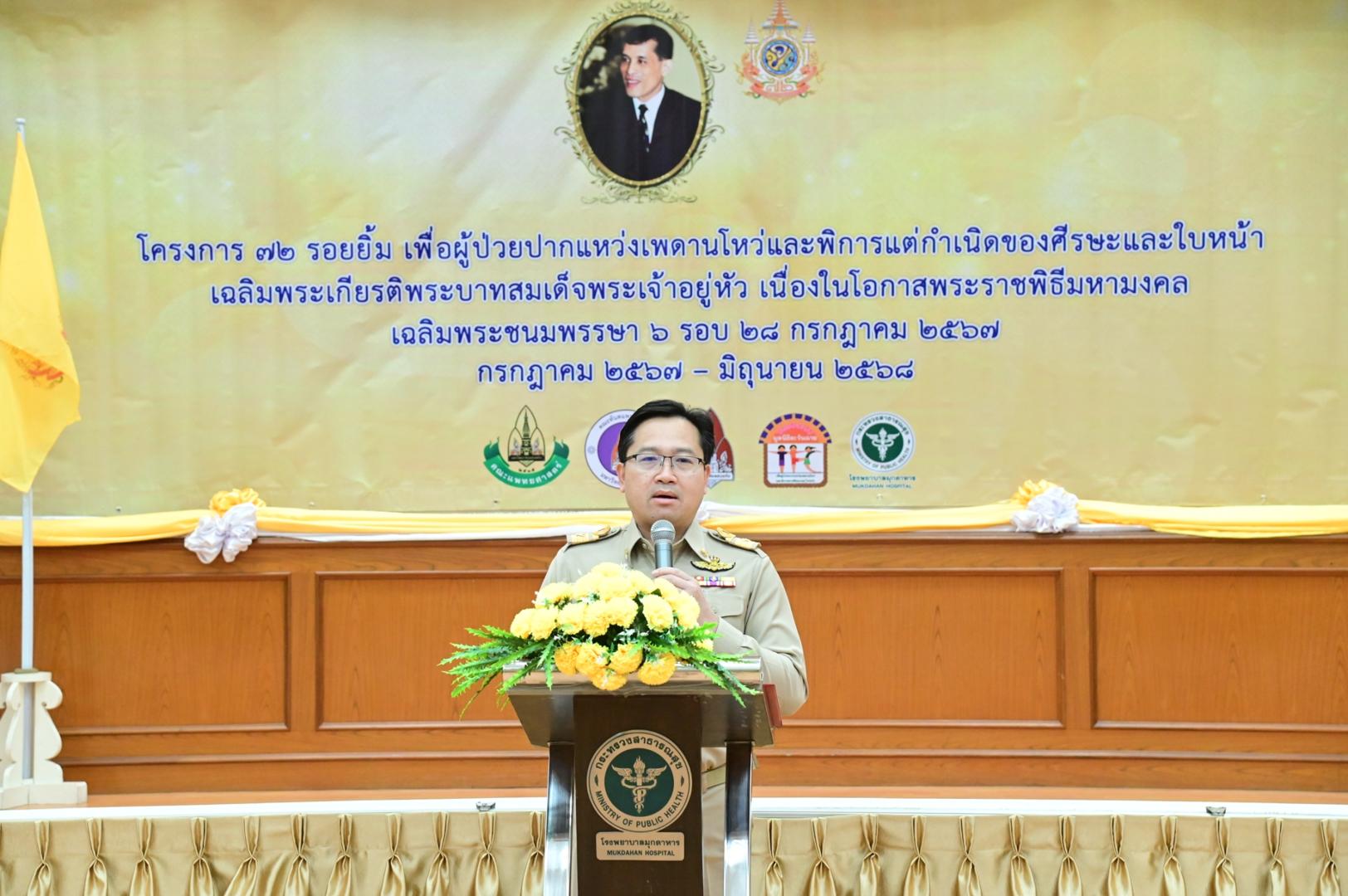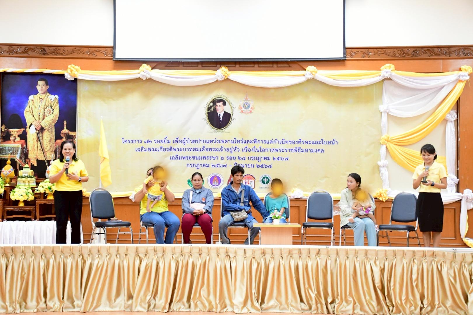 โรงพยาบาลมุกดาหาร จัดกิจกรรมโครงการ 72 รอยยิ้ม เพื่อผู้ป่วยปากแหว่งเพดานโหว่ และความพิการแต่กำเนิดของศีรษะและใบหน้า เพื่อเฉลิมพระเกียรติ พระบาทสมเด็จพระเจ้าอยู่หัว เนื่องในโอกาสมหามงคลเฉลิมพระชนมพรรษา 72 พรรษา ในปี 2567