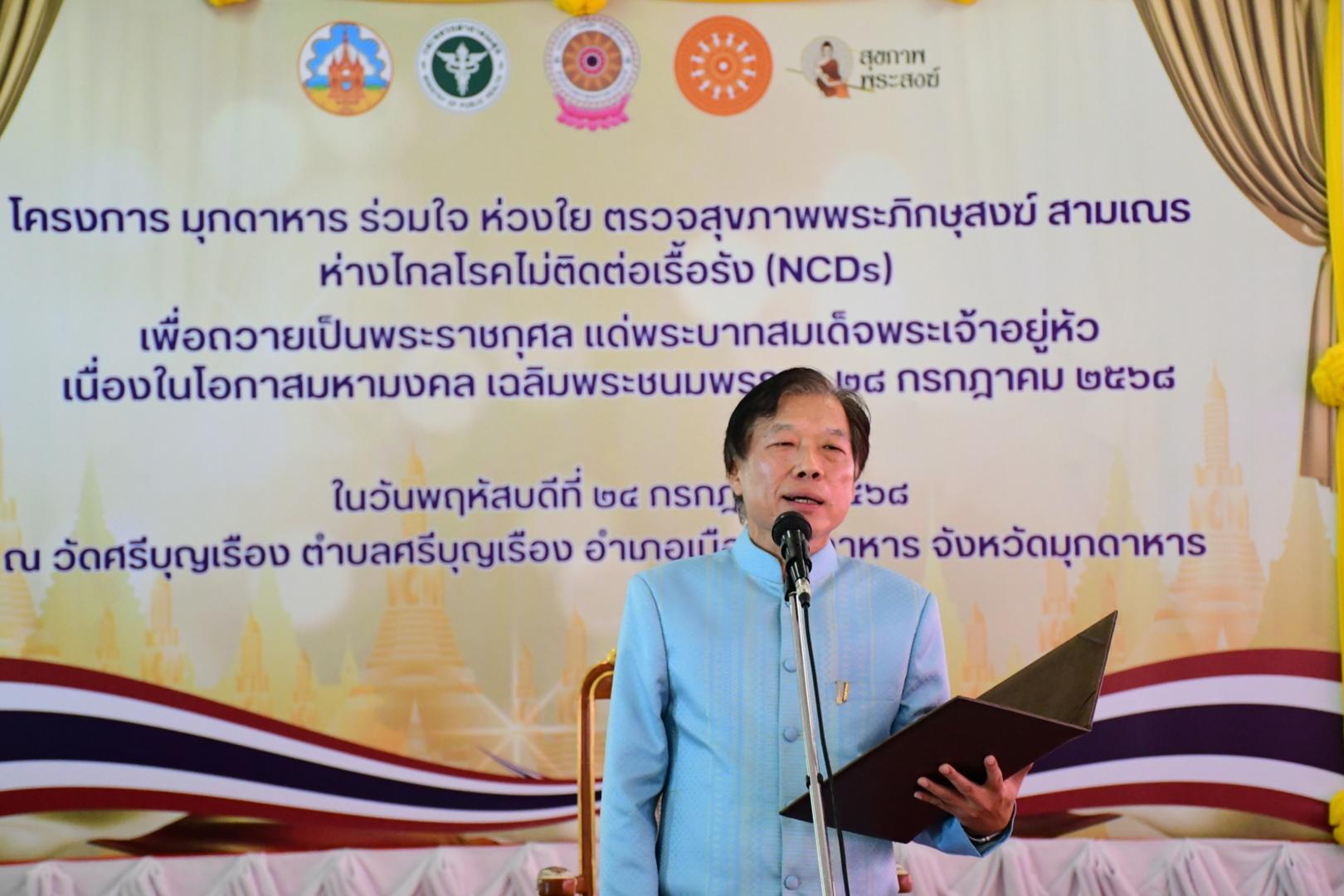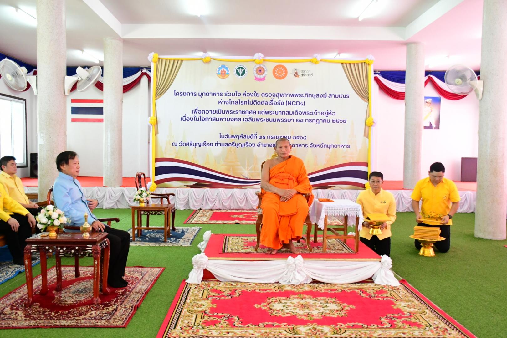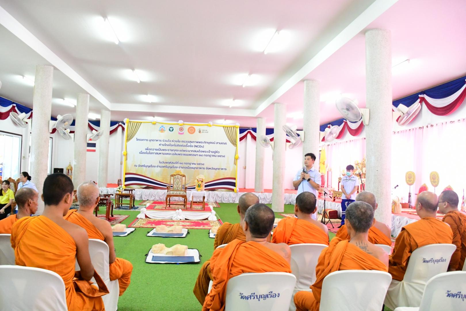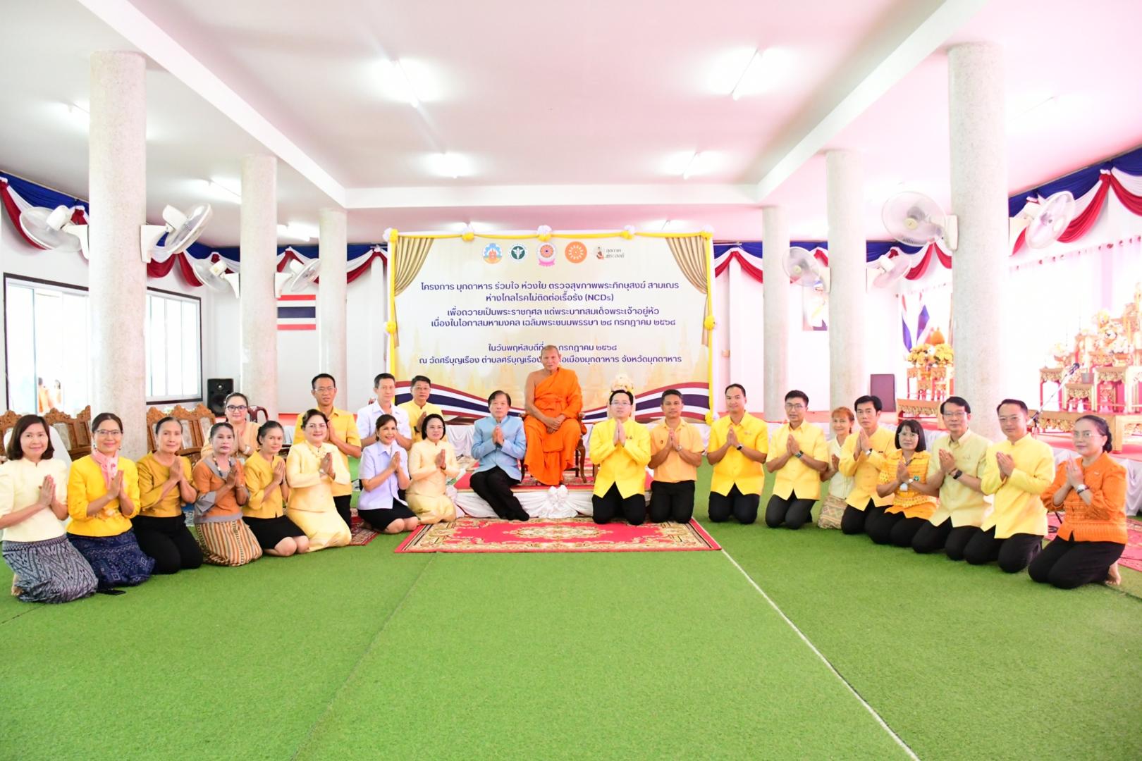โรงพยาบาลมุกดาหารเข้าร่วมกิจกรรมโครงการมุกดาหารร่วมใจ ห่วงใยสุขภาพพระสงฆ์ ห่างไกลโรคไม่ติดต่อเรื้อรัง (NCDs) เพื่อถวายเป็นพระราชกุศล แด่พระบาทสมเด็จพระเจ้าอยู่หัว เนื่องในโอกาสมหา