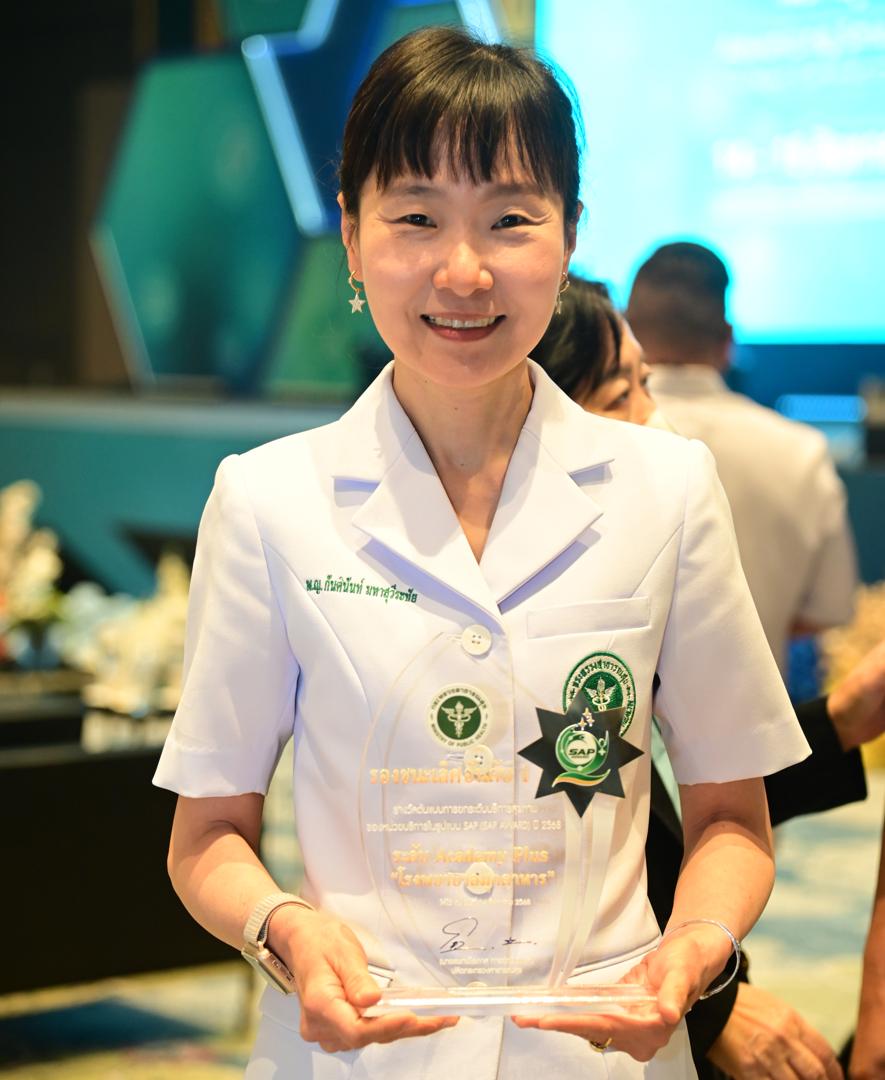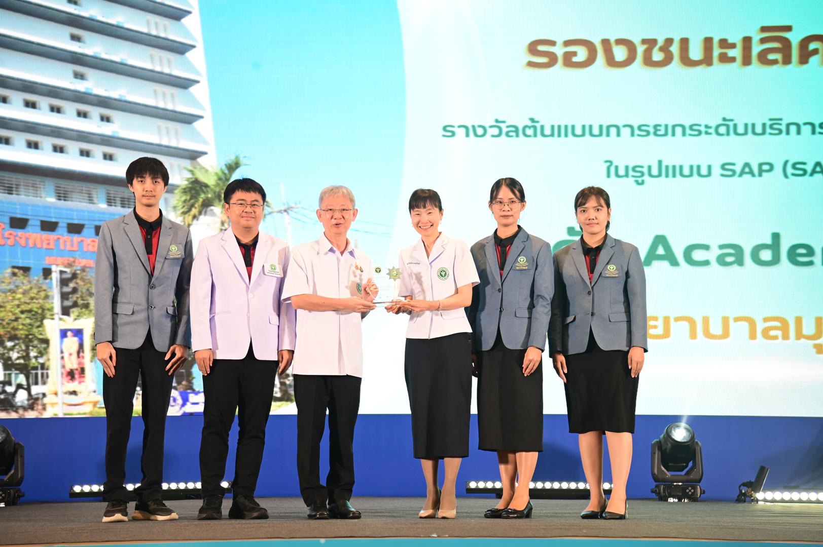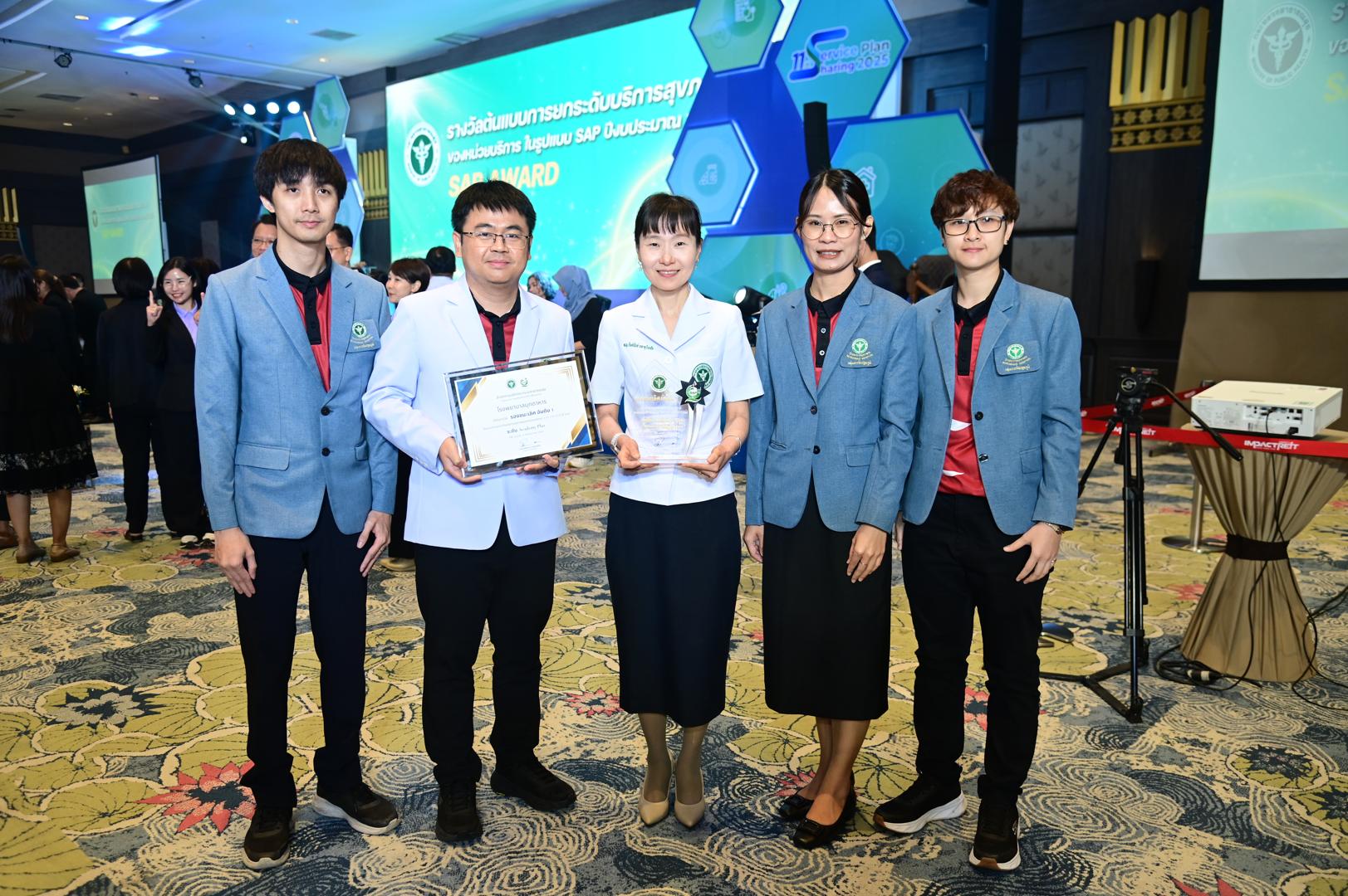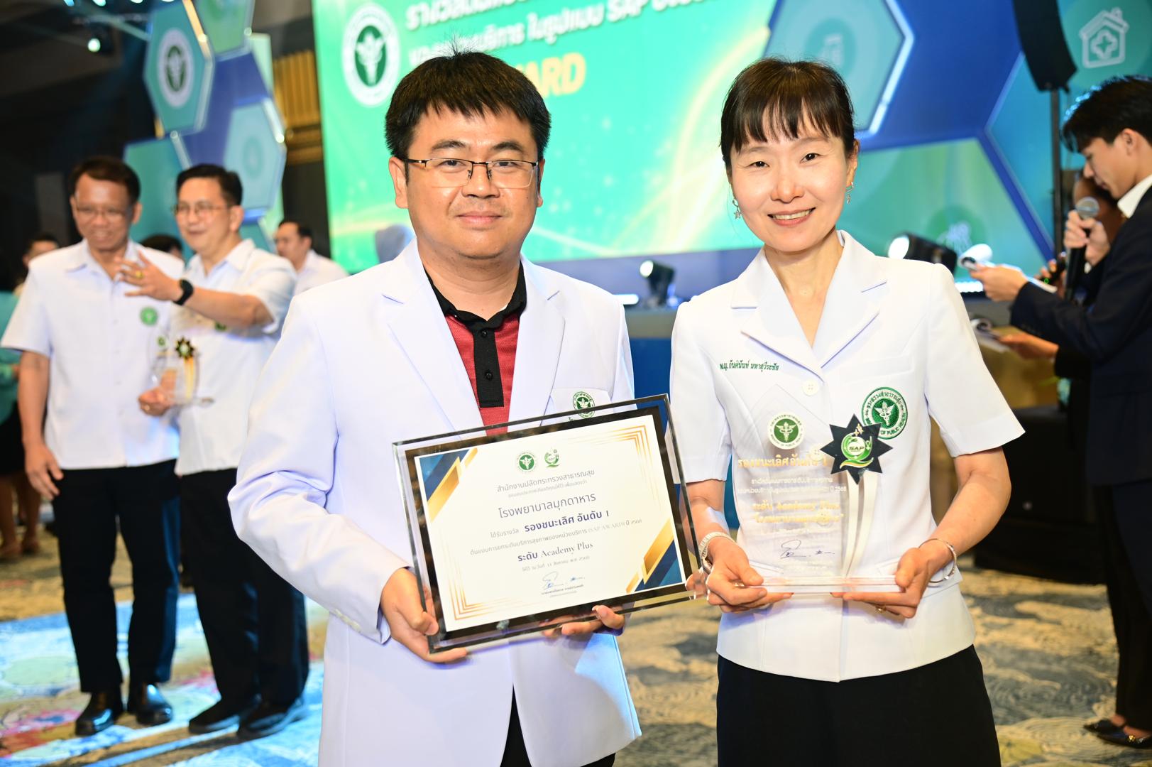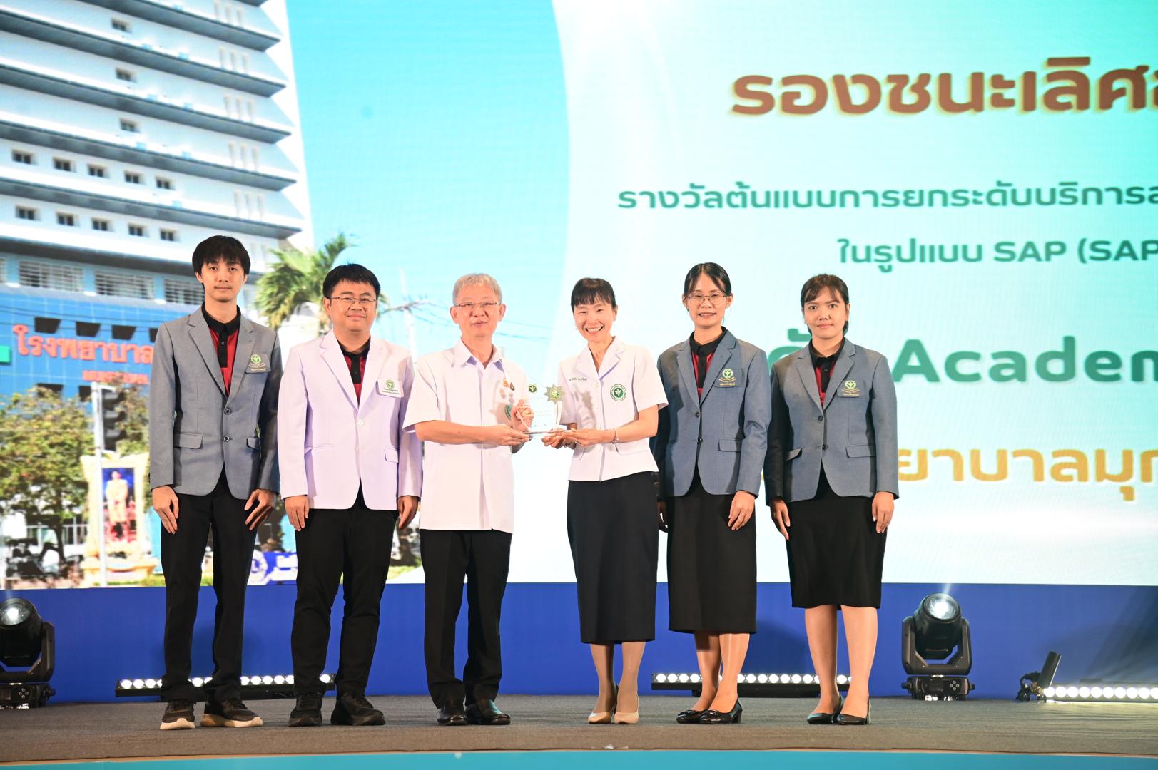 ในโอกาสนี้ โรงพยาบาลมุกดาหารได้รับ โล่รางวัลพร้อมใบประกาศเกียรติคุณ รองชนะเลิศ อันดับ 1 ต้นแบบการยกระดับบริการสุขภาพของหน่วยบริการในรูปแบบ SAP (SAP AWARD) ปี 2568 ”ระดับ Academy Plus“