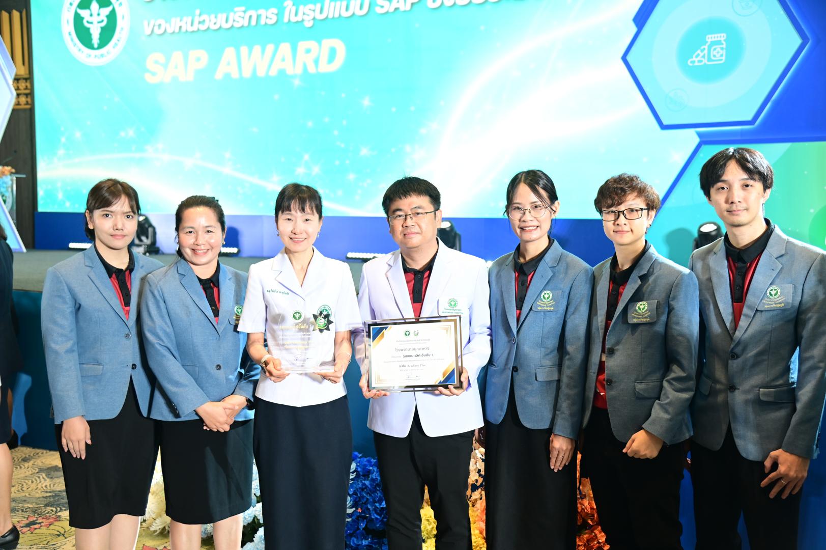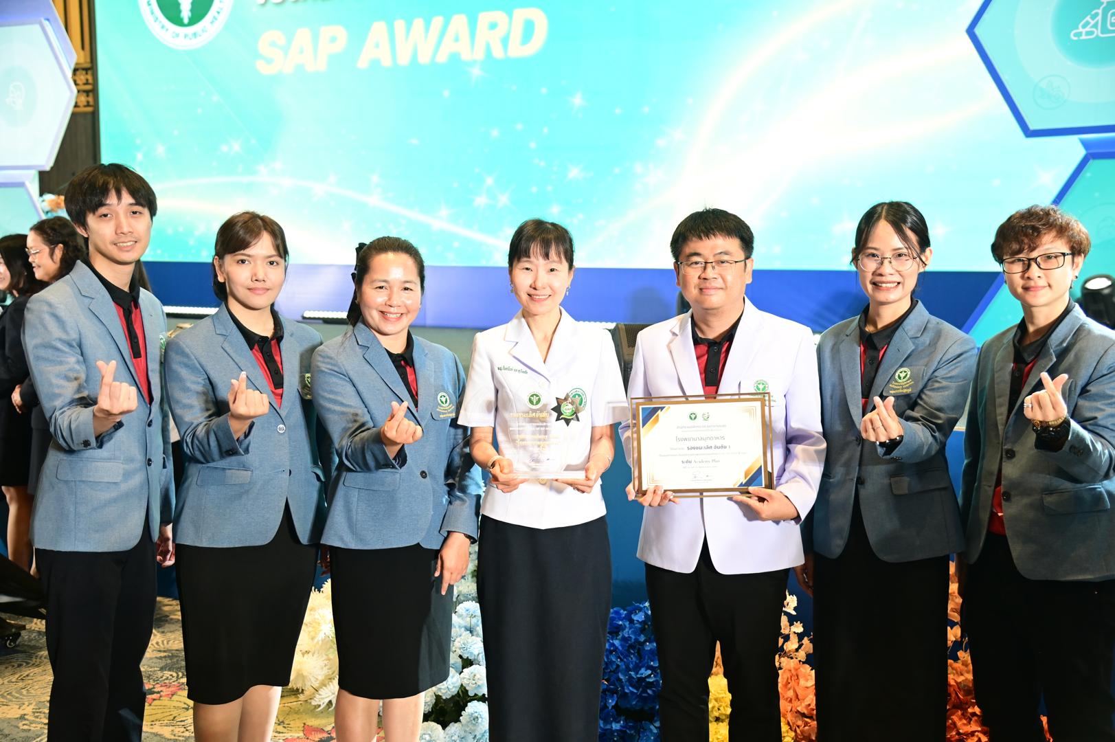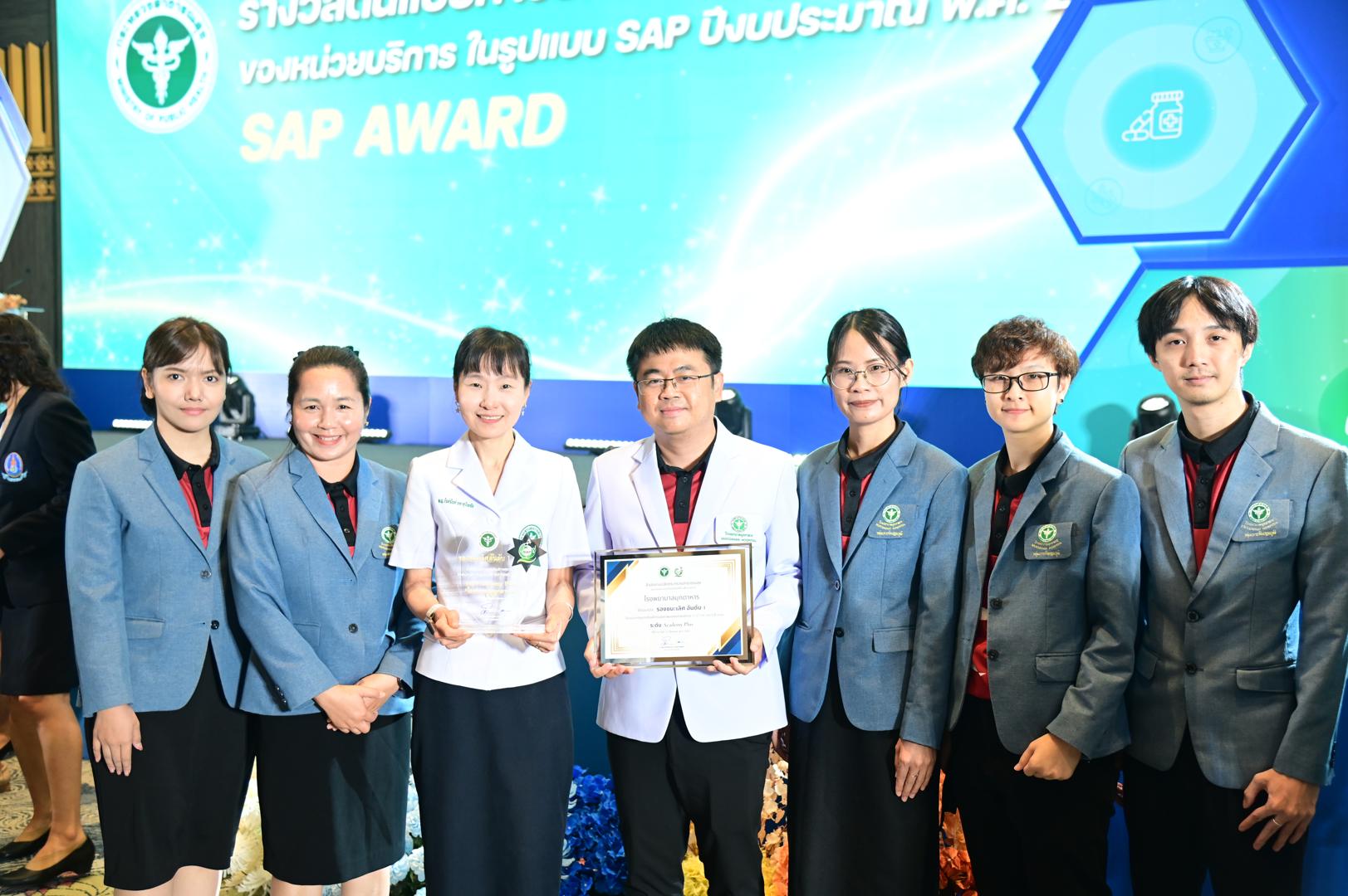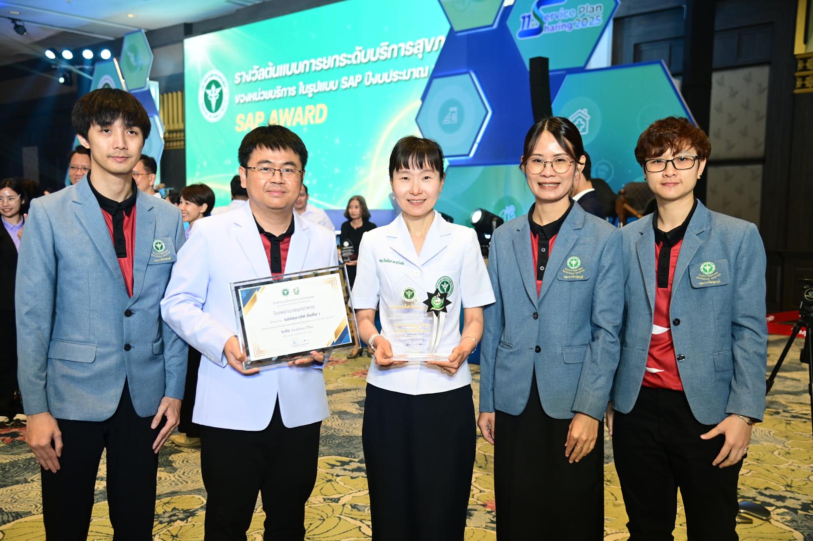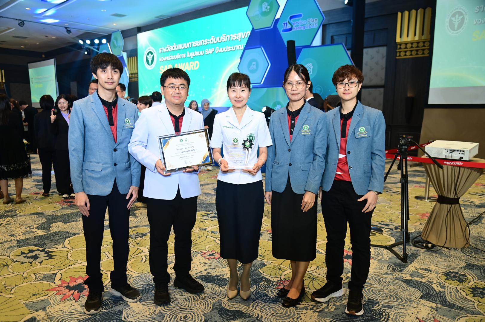 ในโอกาสนี้ โรงพยาบาลมุกดาหารได้รับ โล่รางวัลพร้อมใบประกาศเกียรติคุณ รองชนะเลิศ อันดับ 1 ต้นแบบการยกระดับบริการสุขภาพของหน่วยบริการในรูปแบบ SAP (SAP AWARD) ปี 2568 ”ระดับ Academy Plus“