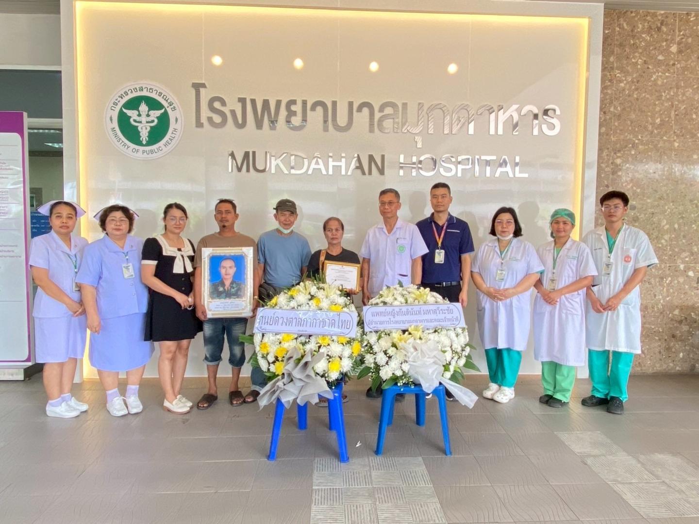 โรงพยาบาลมุกดาหารขอสดุดีในจิตอันประเสริฐของผู้วายชนม์และครอบครัว ที่ได้มอบโอกาสในการมองเห็นและการมีชีวิตใหม่แก่ผู้อื่น