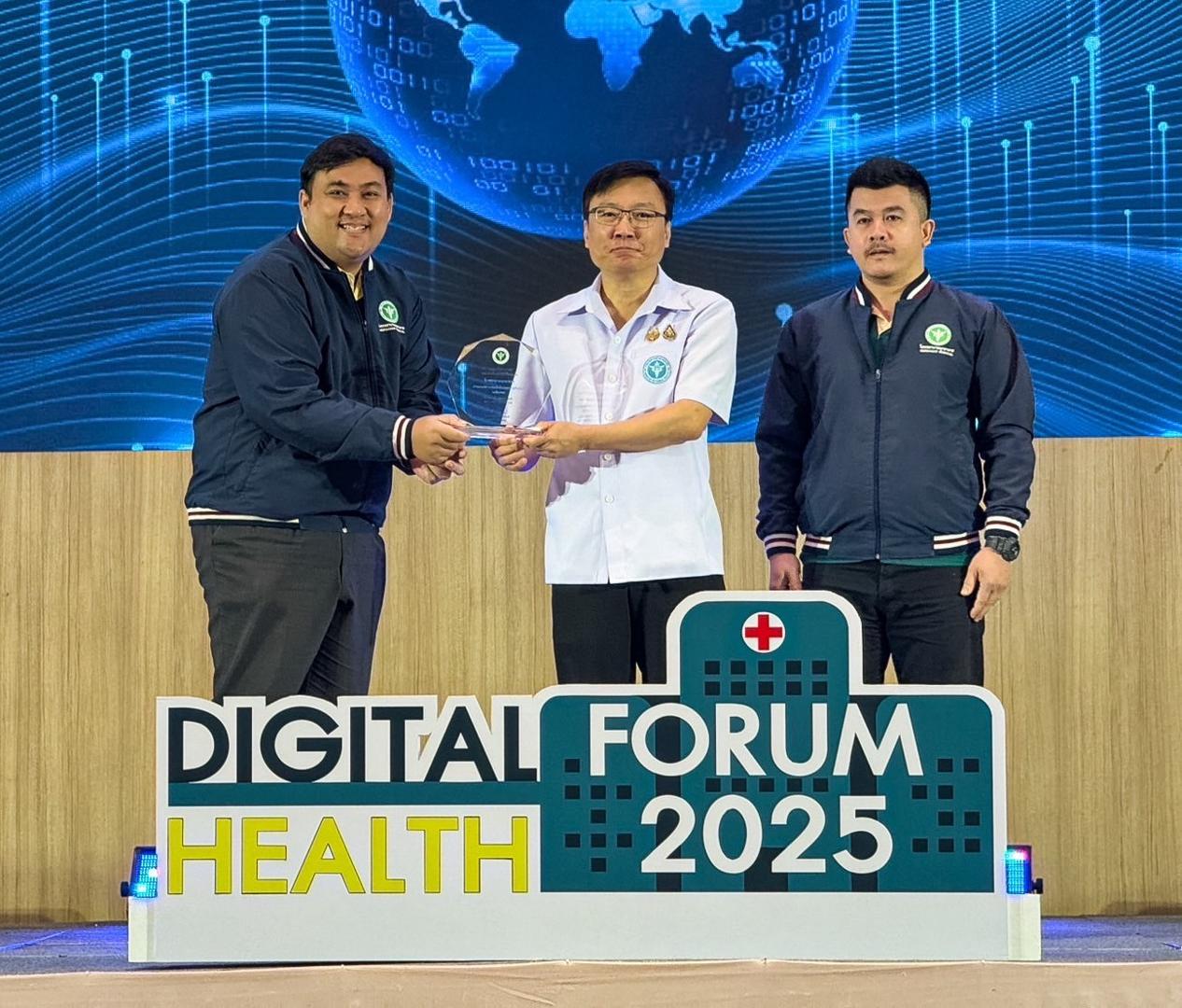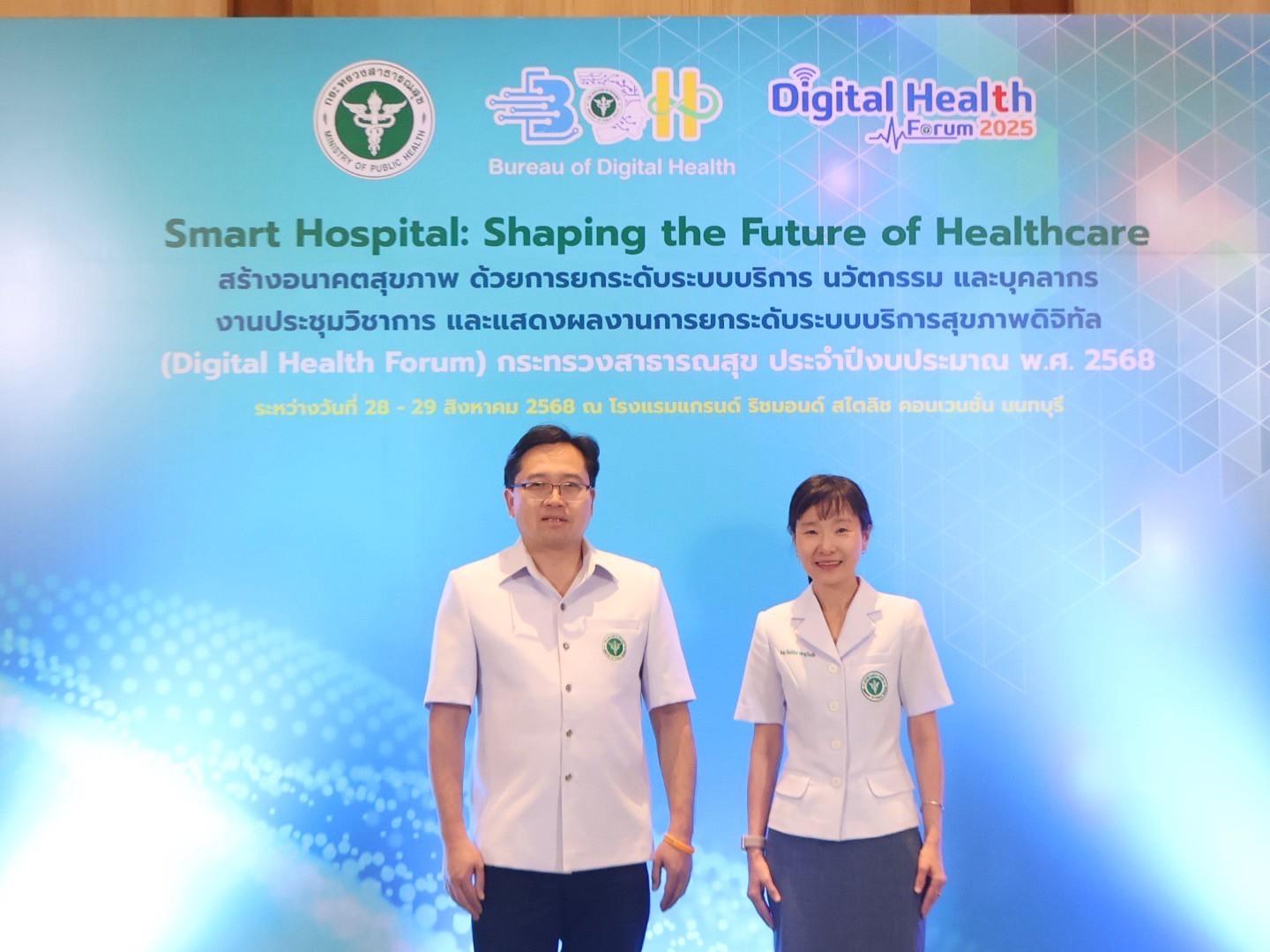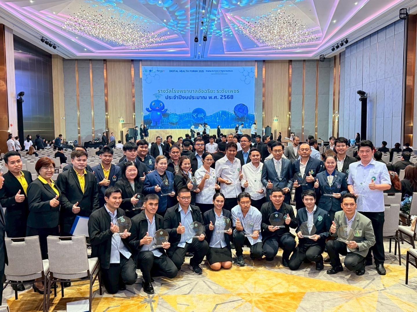แพทย์หญิงกันตินันท์ มหาสุวีระชัย ผู้อำนวยการโรงพยาบาลมุกดาหาร พร้อมด้วยบุคลากรในสังกัดกระทรวงสาธารณสุข ร่วมรับโล่รางวัลโรงพยาบาลอัจฉริยะ ระดับเพชร ปีงบประมาณ 2568 ในการประชุมวิชาการ และแสดงผลงานการยกระดับระบบบริการสุขภาพดิจิทัล (Digital Health Forum) กระทรวงสาธารณสุข ประจำปีงบประมาณ พ.ศ.2568 ระหว่างวันที่ 28-29 สิงหาคม 2568 เพื่อถ่ายทอดนโยบายการพัฒนาระบบบริการสุขภาพดิจิทัลให้เป็นองค์กรดิจิทัลเต็มรูปแบบ และเป็นการให้หน่วยงานมีส่วนร่วมในการพัฒนาระบบบริการสุขภาพดิจิทัลให้เกิดเป็นรูปธรรมและยั่งยืน สร้างเครือข่ายการพัฒนาระบบสุขภาพดิจิทัลของกระกรวงสาธารณสุข ให้เกิดความเข้มแข็ง สามารถขับเคลื่อนระบบสุขภาพดิจิทัล รวมทั้งให้ทุกหน่วยงานที่เกี่ยวข้องตระหนักถึงความสำคัญของการพัฒนาระบบบริการสุขภาพดิจิทัล ภายใต้ความปลอดภัยทางไซเบอร์