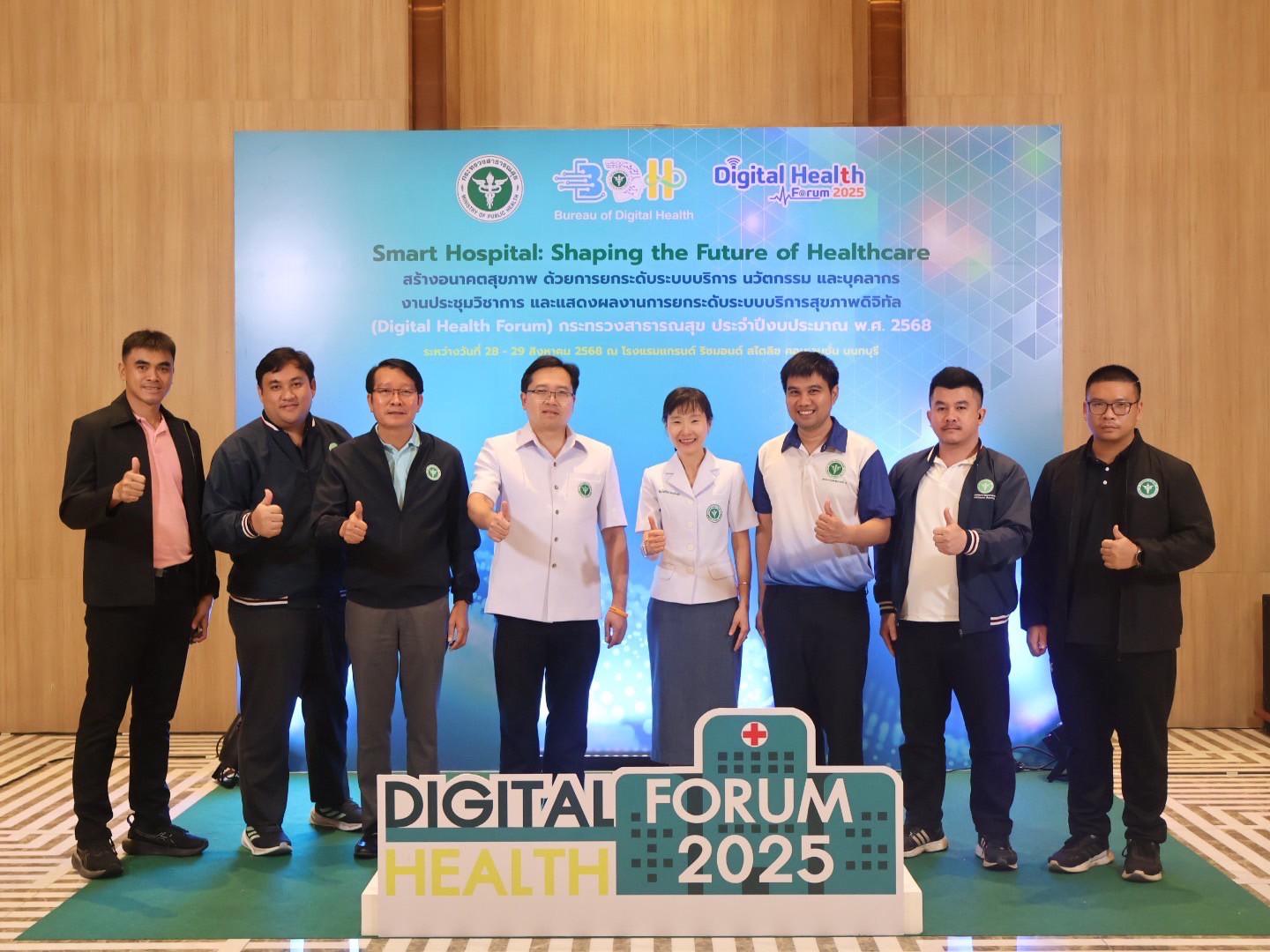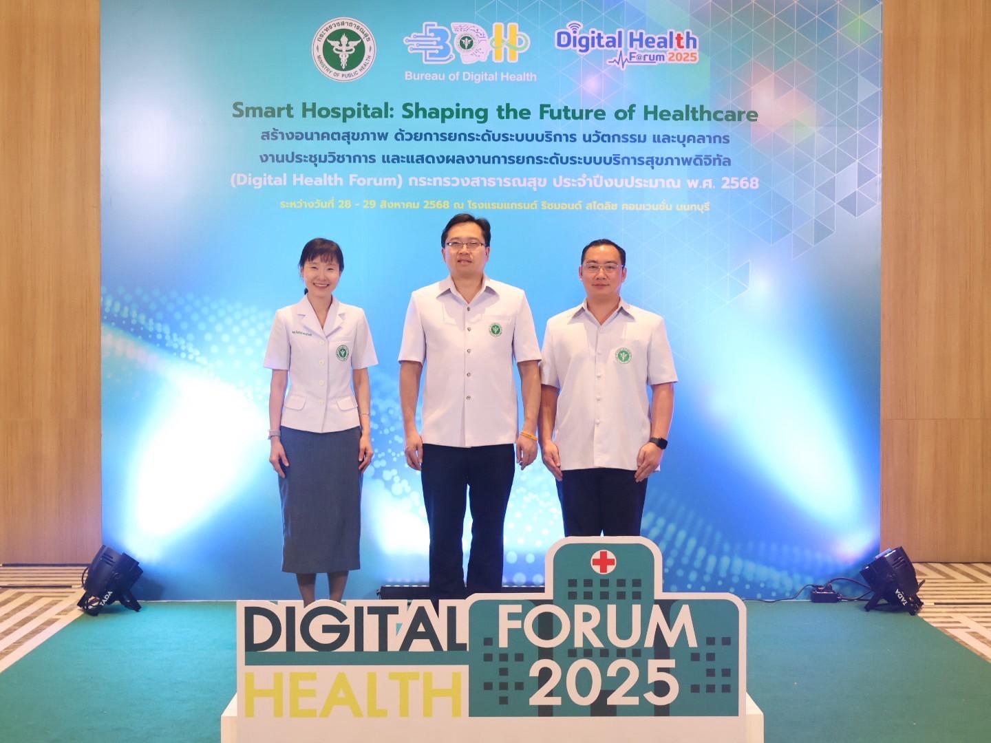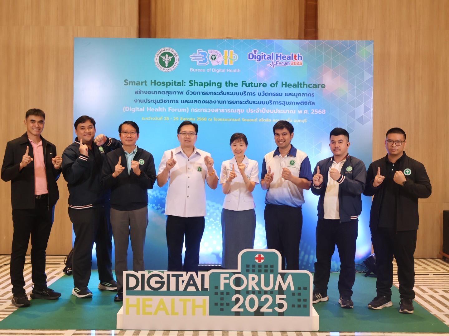 แพทย์หญิงกันตินันท์ มหาสุวีระชัย ผู้อำนวยการโรงพยาบาลมุกดาหาร พร้อมด้วยบุคลากรในสังกัดกระทรวงสาธารณสุข ร่วมรับโล่รางวัลโรงพยาบาลอัจฉริยะ ระดับเพชร ปีงบประมาณ 2568 ในการประชุมวิชาการ และแสดงผลงานการยกระดับระบบบริการสุขภาพดิจิทัล (Digital Health Forum) กระทรวงสาธารณสุข ประจำปีงบประมาณ พ.ศ.2568 ระหว่างวันที่ 28-29 สิงหาคม 2568 เพื่อถ่ายทอดนโยบายการพัฒนาระบบบริการสุขภาพดิจิทัลให้เป็นองค์กรดิจิทัลเต็มรูปแบบ และเป็นการให้หน่วยงานมีส่วนร่วมในการพัฒนาระบบบริการสุขภาพดิจิทัลให้เกิดเป็นรูปธรรมและยั่งยืน สร้างเครือข่ายการพัฒนาระบบสุขภาพดิจิทัลของกระกรวงสาธารณสุข ให้เกิดความเข้มแข็ง สามารถขับเคลื่อนระบบสุขภาพดิจิทัล รวมทั้งให้ทุกหน่วยงานที่เกี่ยวข้องตระหนักถึงความสำคัญของการพัฒนาระบบบริการสุขภาพดิจิทัล ภายใต้ความปลอดภัยทางไซเบอร์