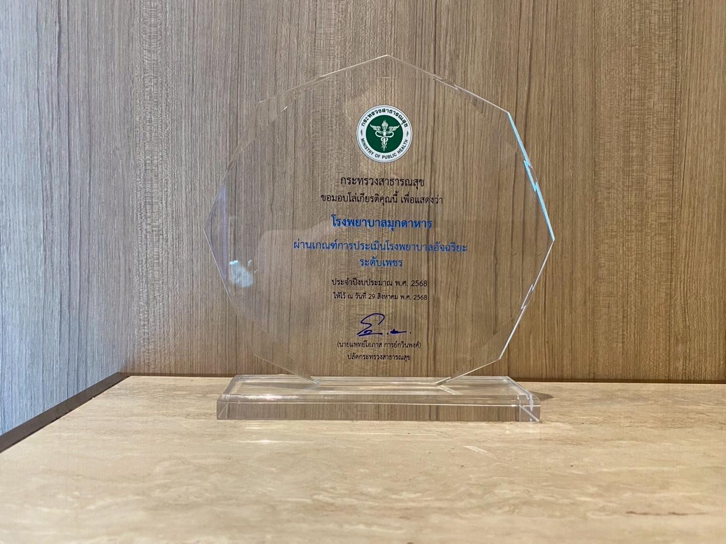 โรงพยาบาลมุกดาหาร ได้รับโล่รางวัลโรงพยาบาลอัจฉริยะ ระดับเพชร ปีงบประมาณ 2568