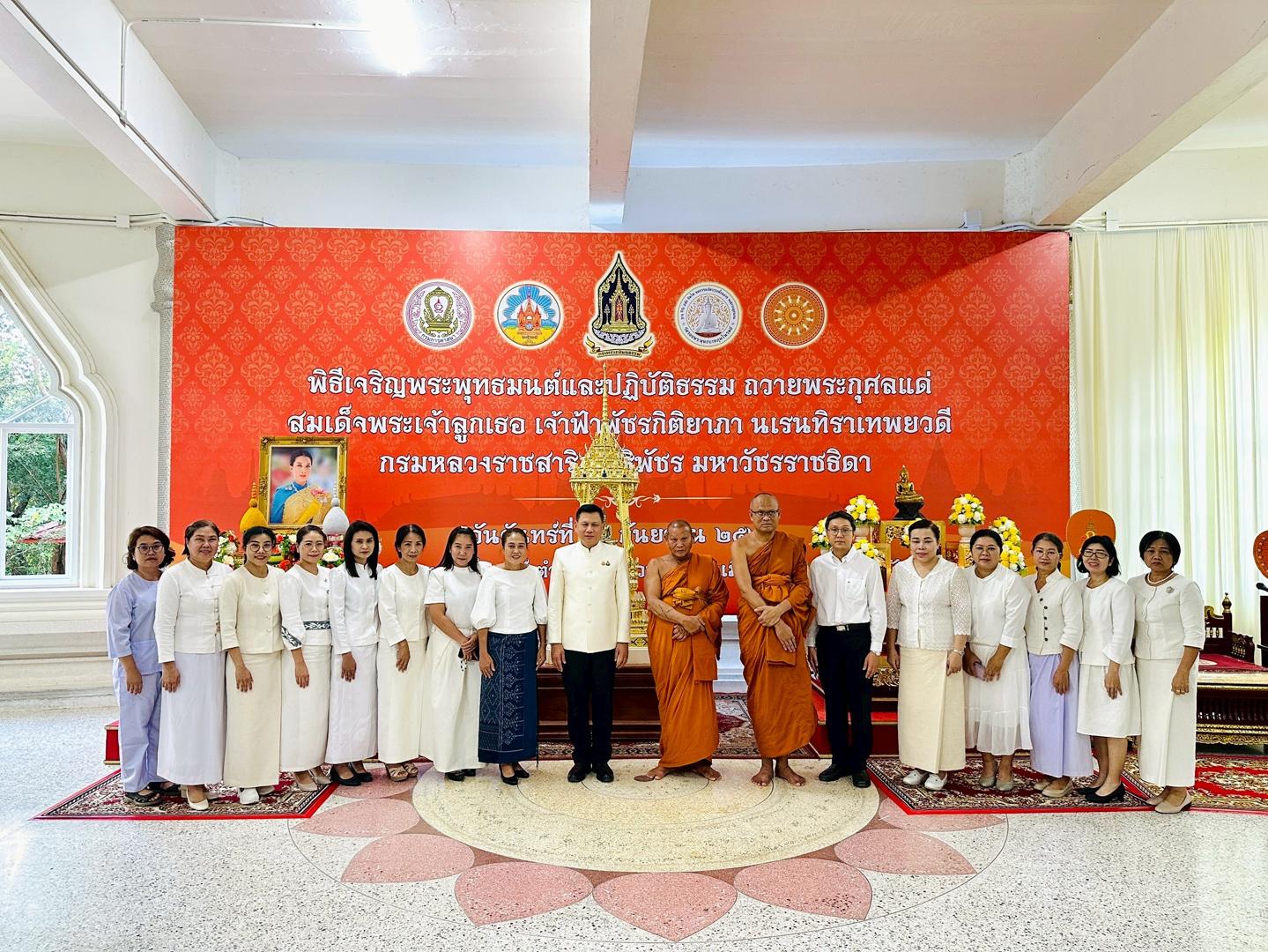 โรงพยาบาลมุกดาหาร ร่วมพิธีเจริญพระพุทธมนต์และปฏิบัติธรรมถวายพระกุศลแด่ สมเด็จพระเจ้าลูกเธอ เจ้าฟ้าพัชรกิติยาภา นเรนทิราเทพยวดี กรมหลวงราชสาริณีสิริพัชร มหาวัชรราชธิดา