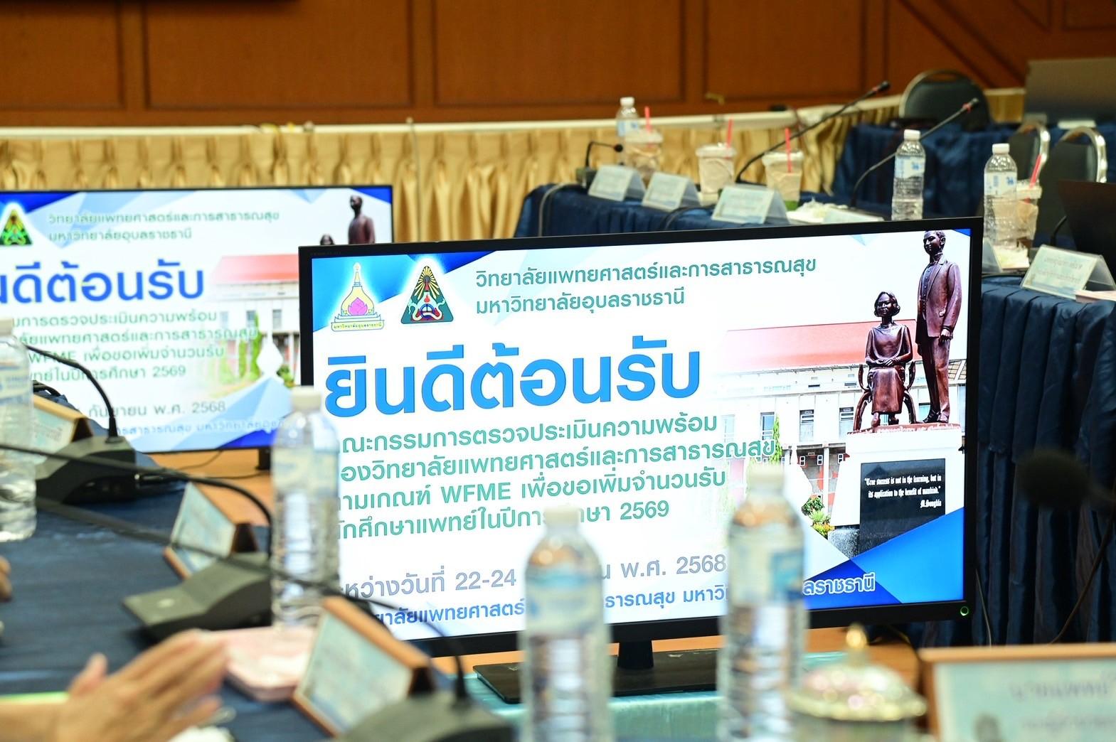 การลงพื้นที่ในครั้งนี้นำโดย รองศาสตราจารย์นายแพทย์สุธรรม ปิ่นเจริญ กรรมการสภามหาวิทยาลัยอุบลราชธานี พร้อมด้วยทีมผู้ทรงคุณวุฒิและผู้บริหารของวิทยาลัยฯ เพื่อร่วมหารือแนวทางและเตรียมการรองรับการตรวจประเมิน ทั้งนี้มีเป้าหมายเพื่อขอเพิ่มจำนวนนักศึกษาแพทย์ในปีการศึกษา 2569