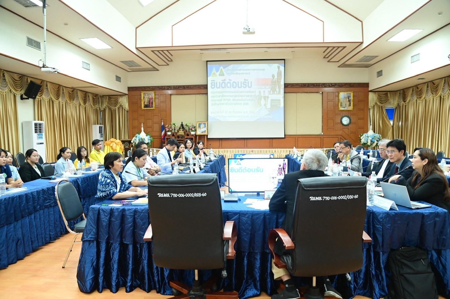 แพทย์หญิงกันตินันท์ มหาสุวีระชัย ผู้อำนวยการโรงพยาบาลมุกดาหาร มอบหมายให้ นายแพทย์วิลาศ นรินทร์ รองผู้อำนวยการฝ่ายการแพทย์ ให้การต้อนรับทีมผู้ทรงคุณวุฒิและผู้บริหารจาก วิทยาลัยแพทยศาสตร์และการสาธารณสุข มหาวิทยาลัยอุบลราชธานี ในการเข้าร่วมเตรียมความพร้อมเพื่อรับการตรวจประเมินรับรองหลักสูตรแพทยศาสตรบัณฑิต ตามเกณฑ์มาตรฐานการศึกษาแพทยศาสตร์ (ระดับแพทยศาสตรบัณฑิต) ตามมาตรฐานสภาการแพทย์โลก (WFME)