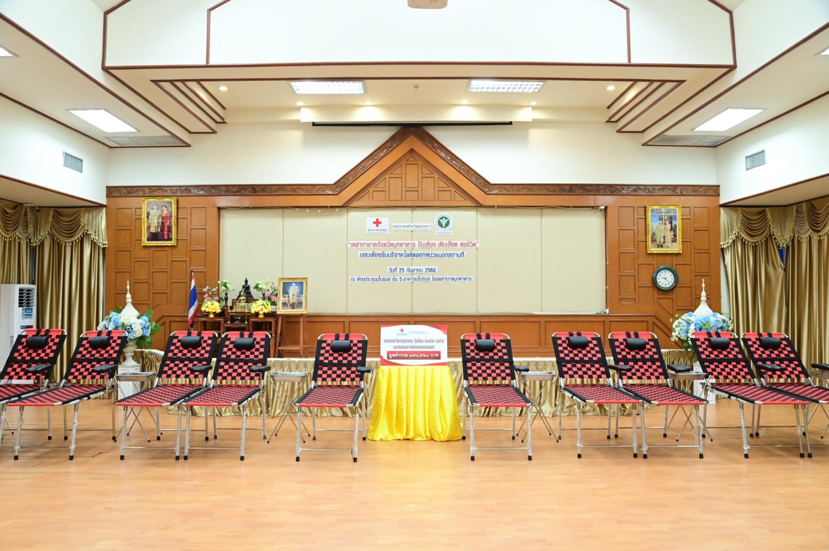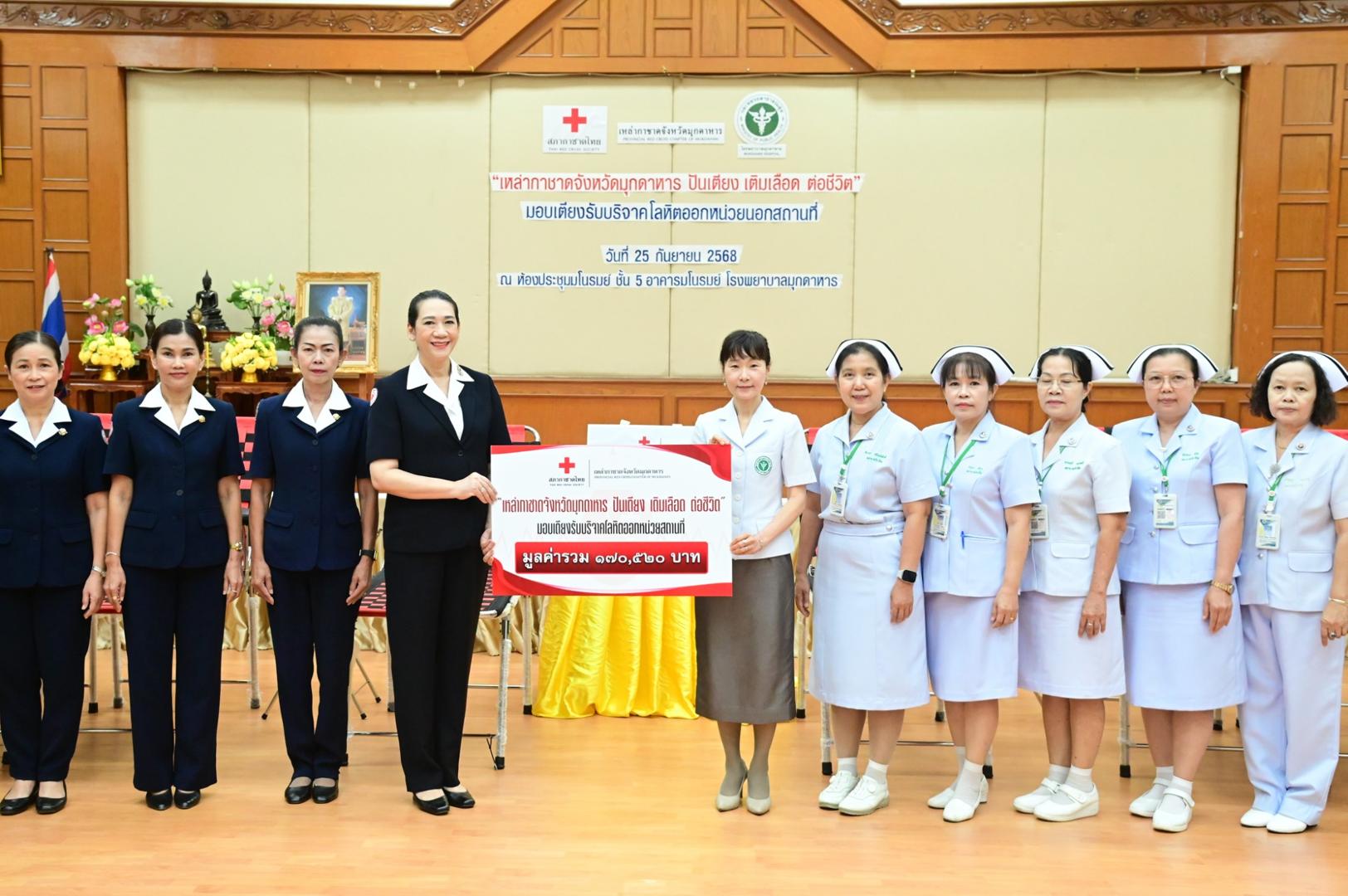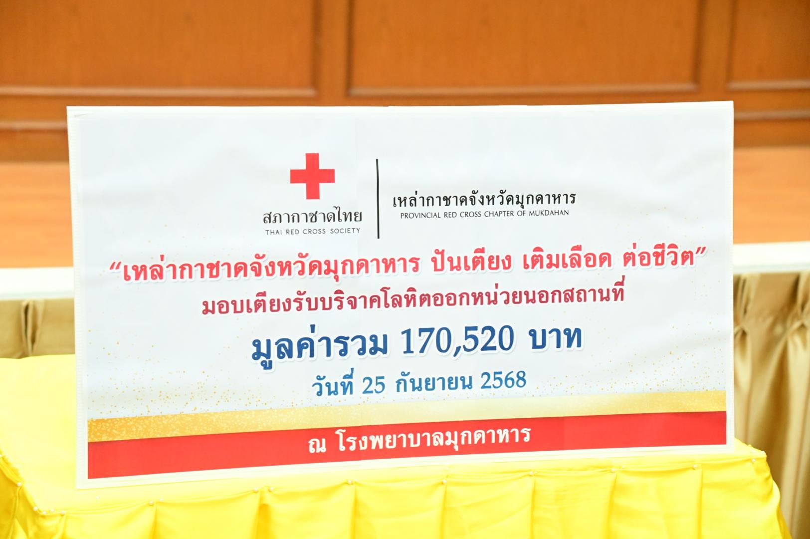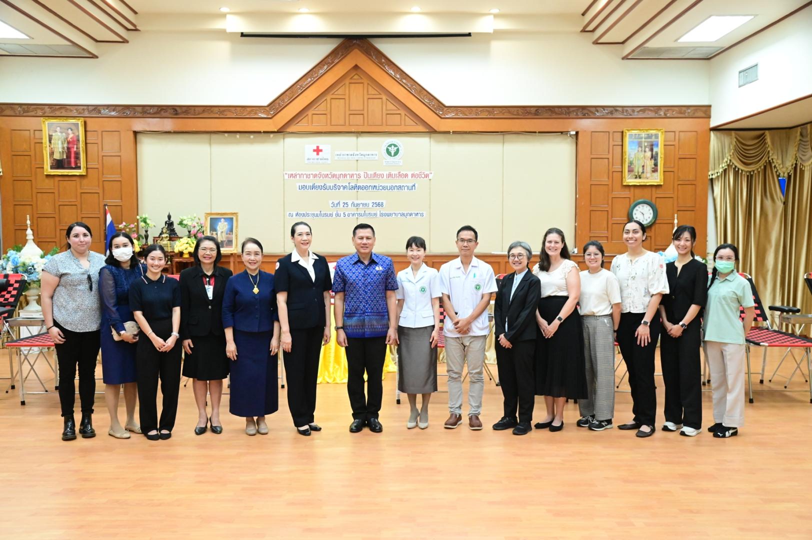ทั้งนี้ โรงพยาบาลมุกดาหารได้รับมอบเตียงรับบริจาคโลหิตสำหรับใช้ออกหน่วยบริการเคลื่อนที่ จำนวน 6 ชุด มูลค่ารวมทั้งสิ้น 170,520 บาท (หนึ่งแสนเจ็ดหมื่นห้าร้อยยี่สิบบาทถ้วน) ซึ่งจะช่วยเพิ่มประสิทธิภาพการให้บริการประชาชนในพื้นที่ห่างไกล และส่งเสริมการมีส่วนร่วมในการบริจาคโลหิตเพื่อช่วยเหลือเพื่อนมนุษย์อย่างยั่งยืน