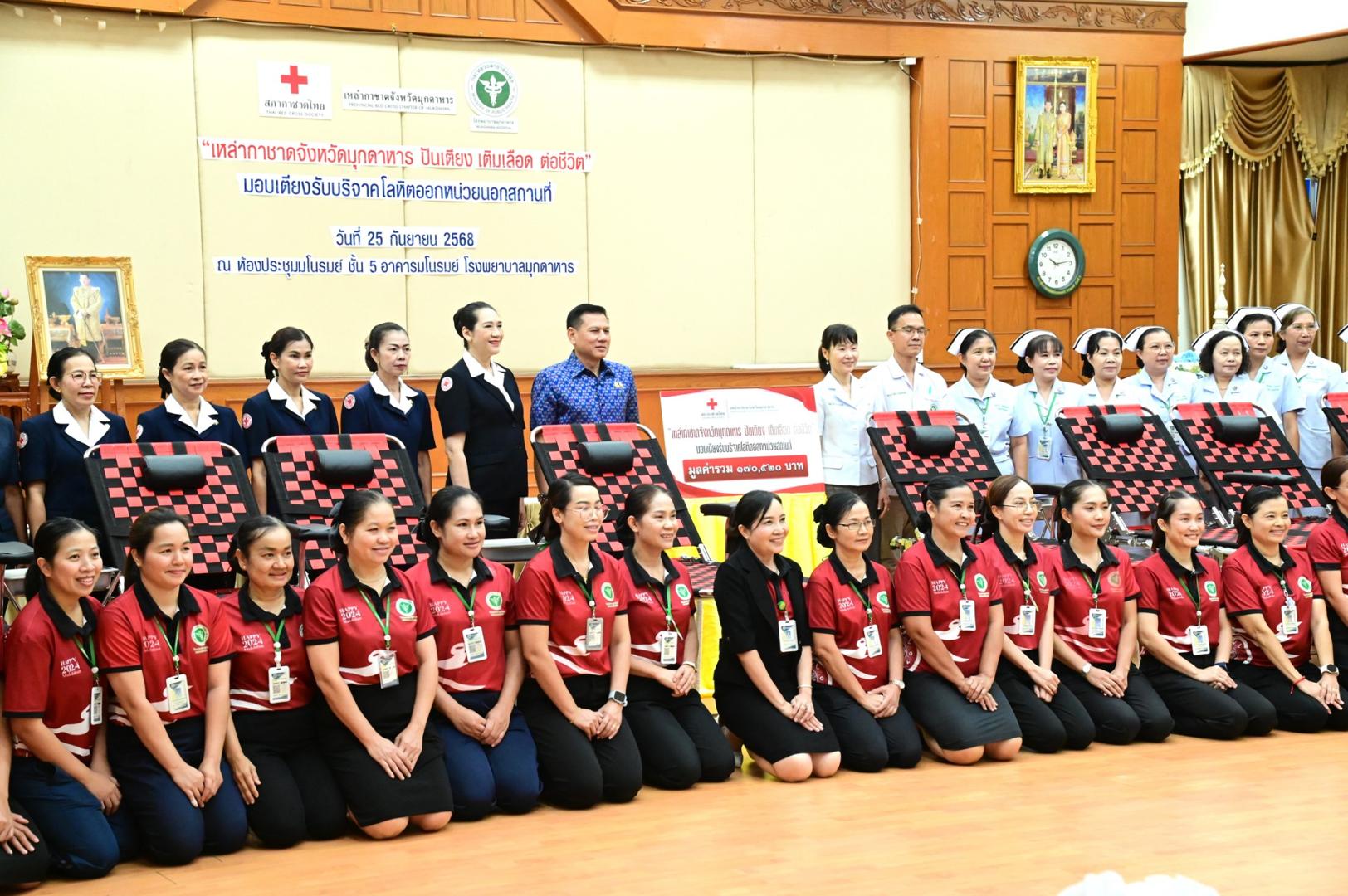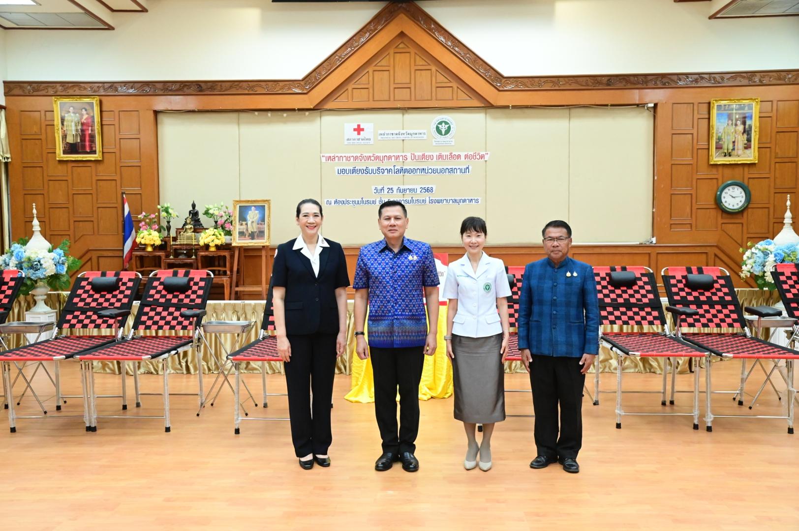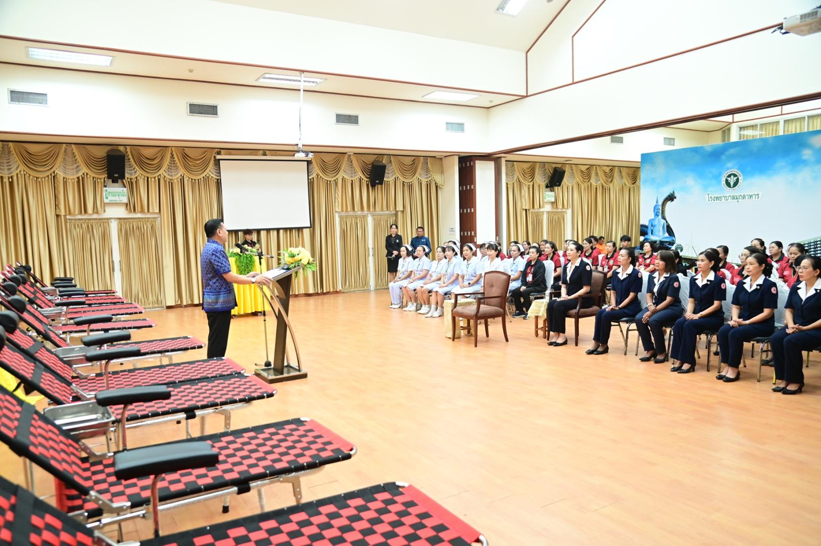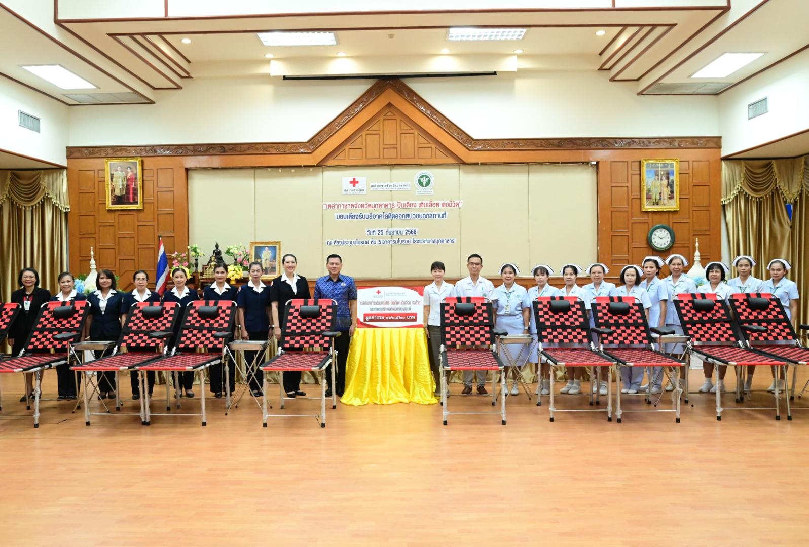 โรงพยาบาลมุกดาหารจัดพิธีรับมอบเตียงรับบริจาคโลหิตออกหน่วยนอกสถานที่ ตามโครงการ “เหล่ากาชาดจังหวัดมุกดาหาร ปันเตียง เติมเลือด ต่อชีวิต”