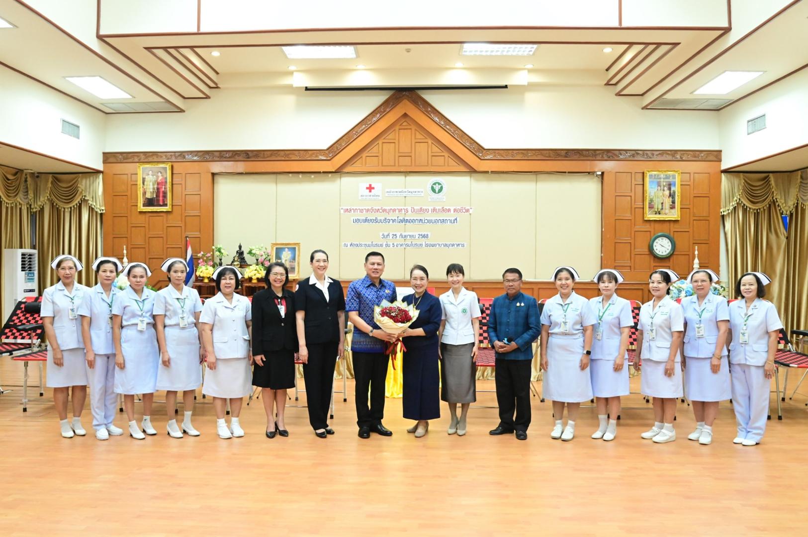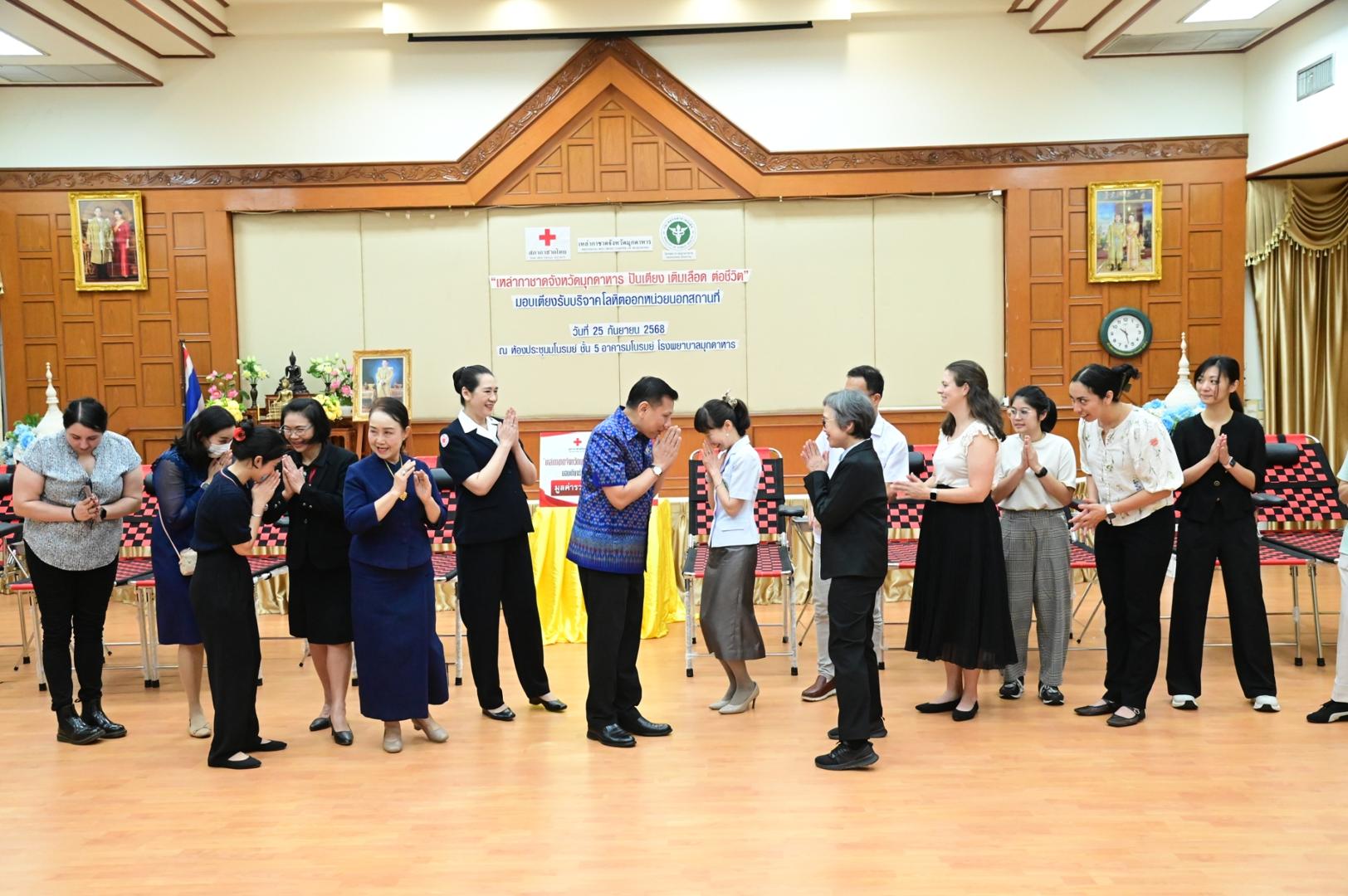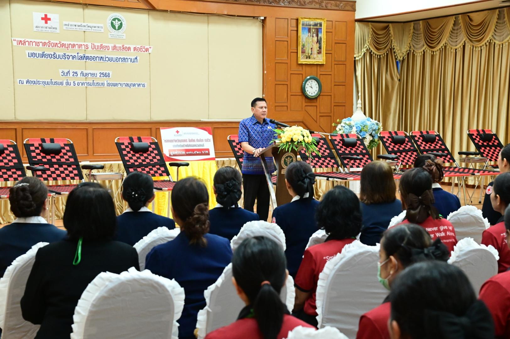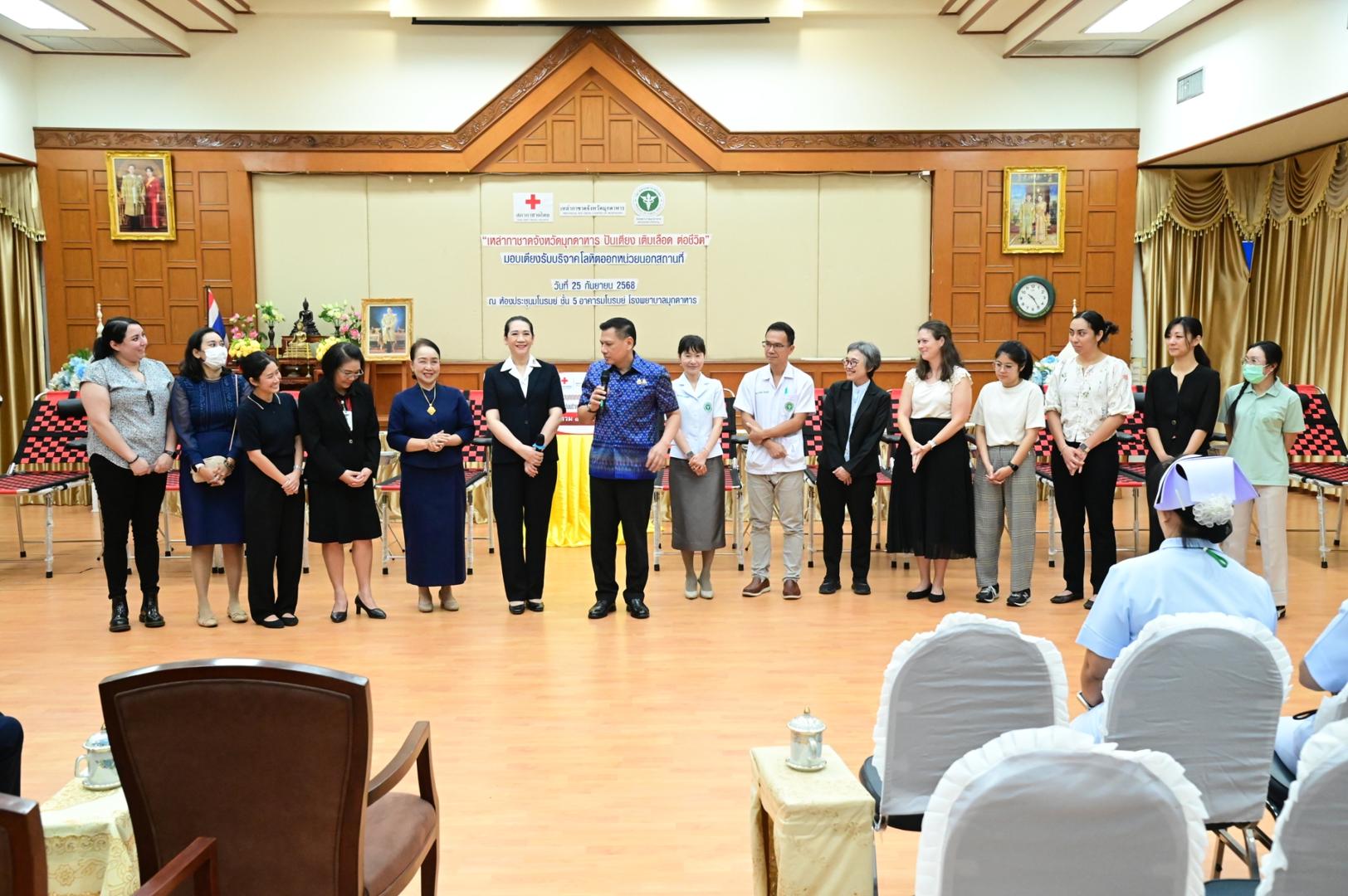 โรงพยาบาลมุกดาหารจัดพิธีรับมอบเตียงรับบริจาคโลหิตออกหน่วยนอกสถานที่ ตามโครงการ “เหล่ากาชาดจังหวัดมุกดาหาร ปันเตียง เติมเลือด ต่อชีวิต”