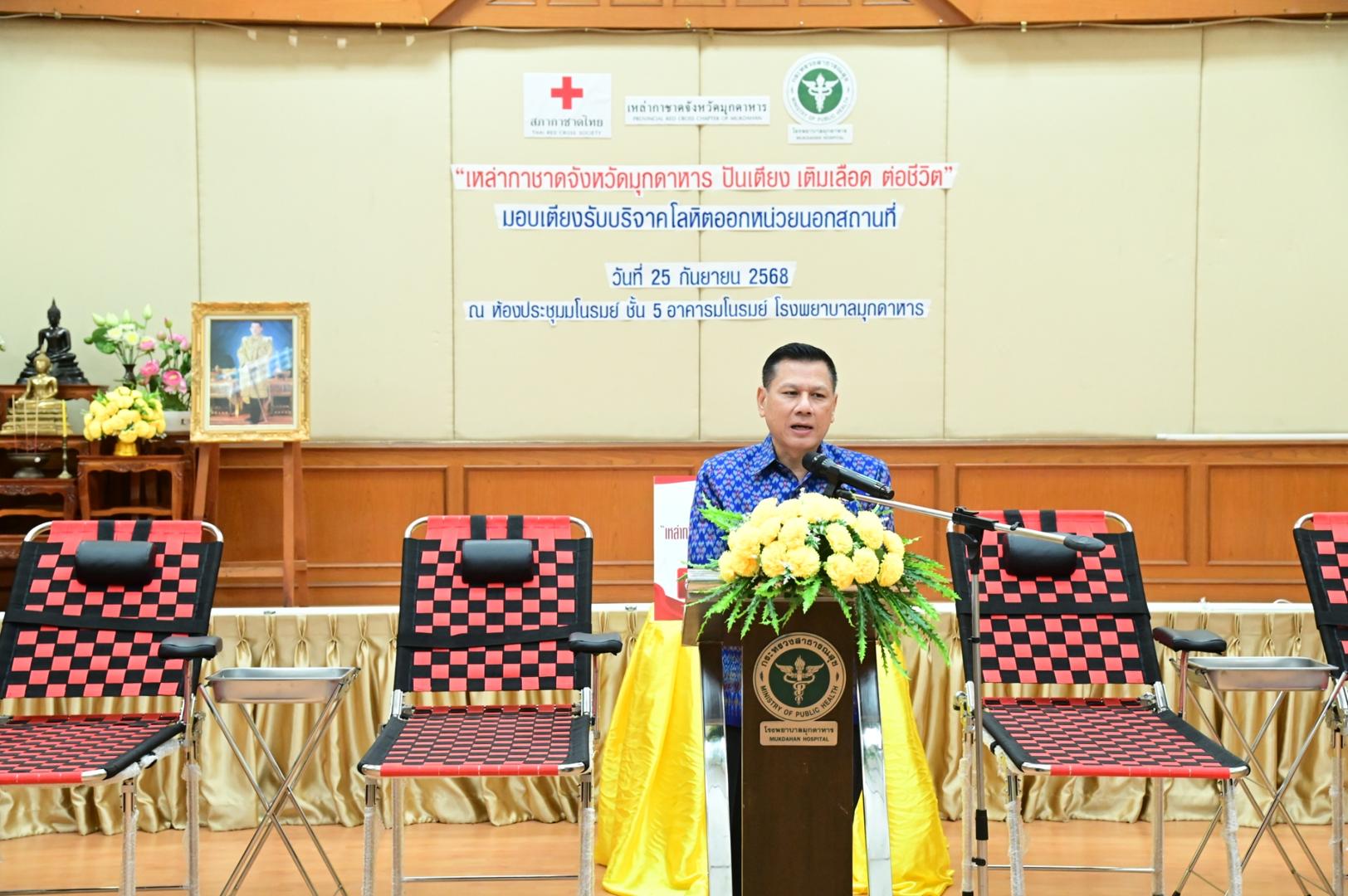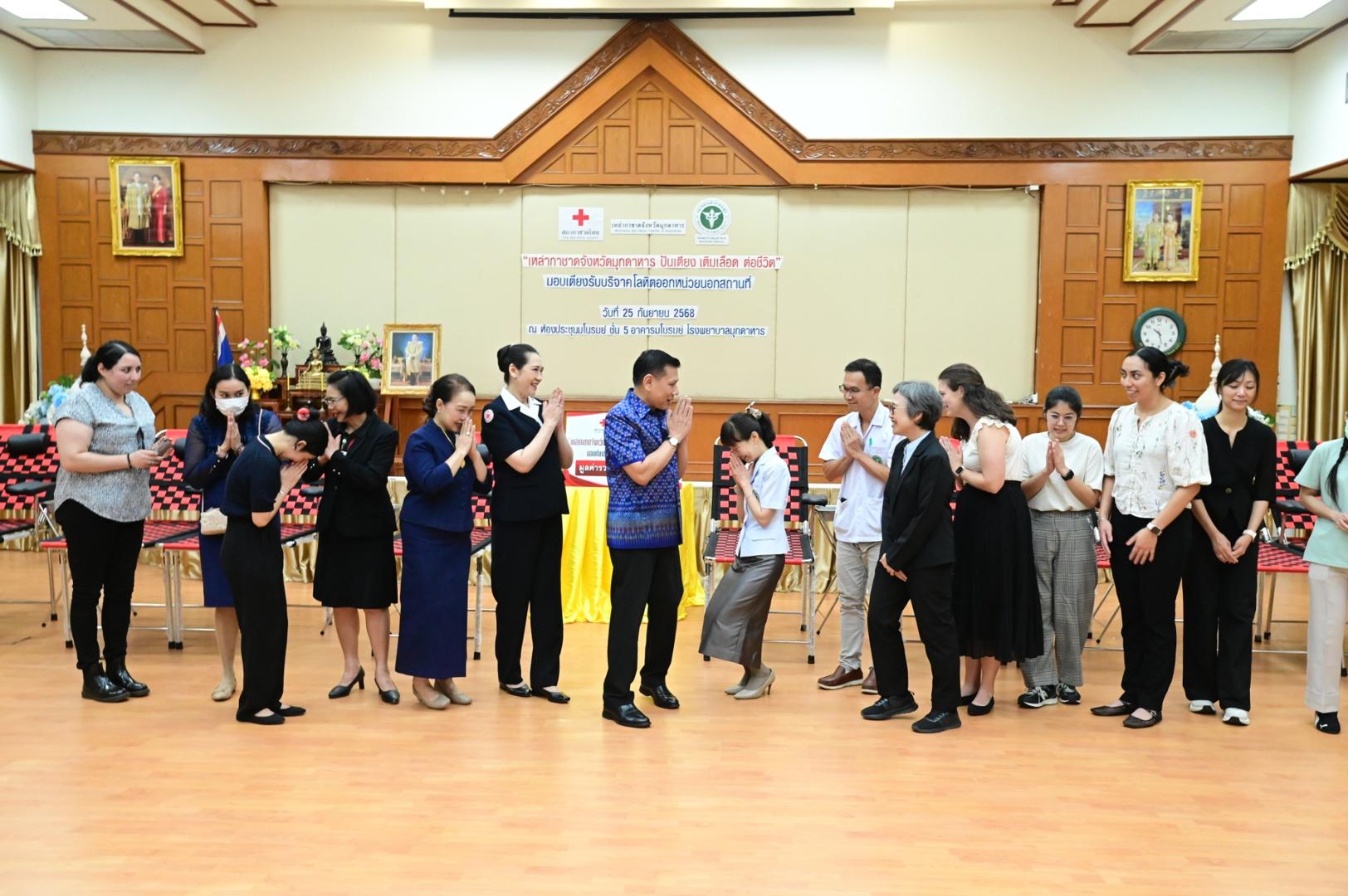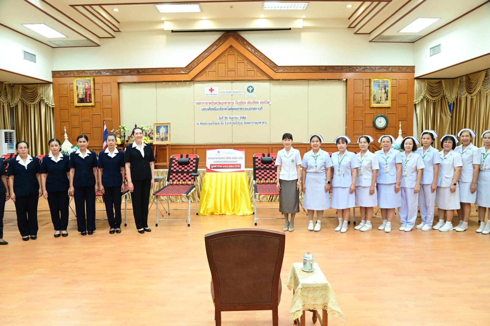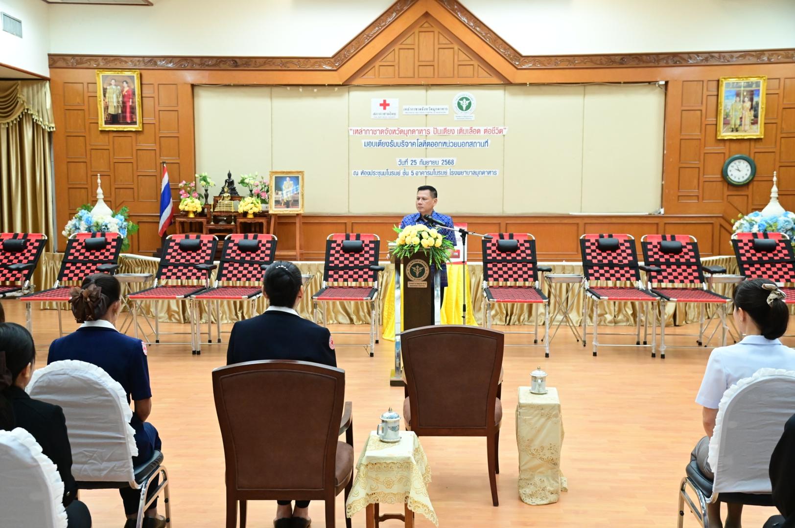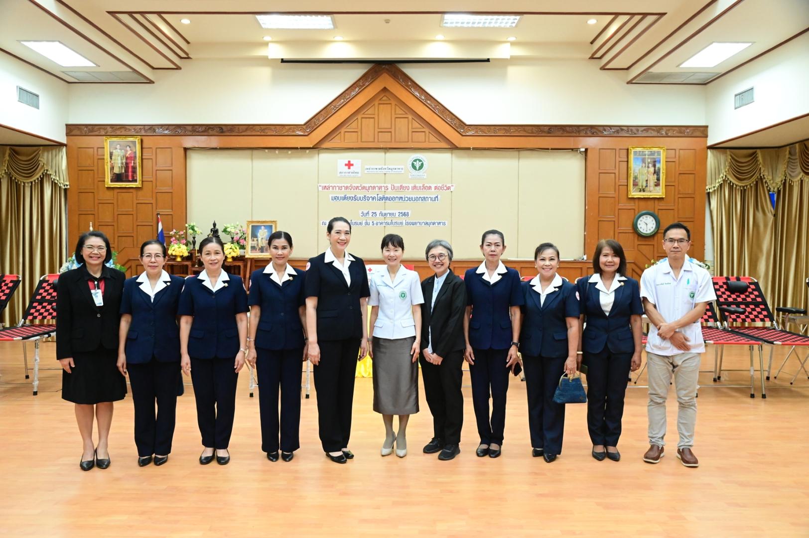โรงพยาบาลมุกดาหารจัดพิธีรับมอบเตียงรับบริจาคโลหิตออกหน่วยนอกสถานที่ ตามโครงการ “เหล่ากาชาดจังหวัดมุกดาหาร ปันเตียง เติมเลือด ต่อชีวิต”