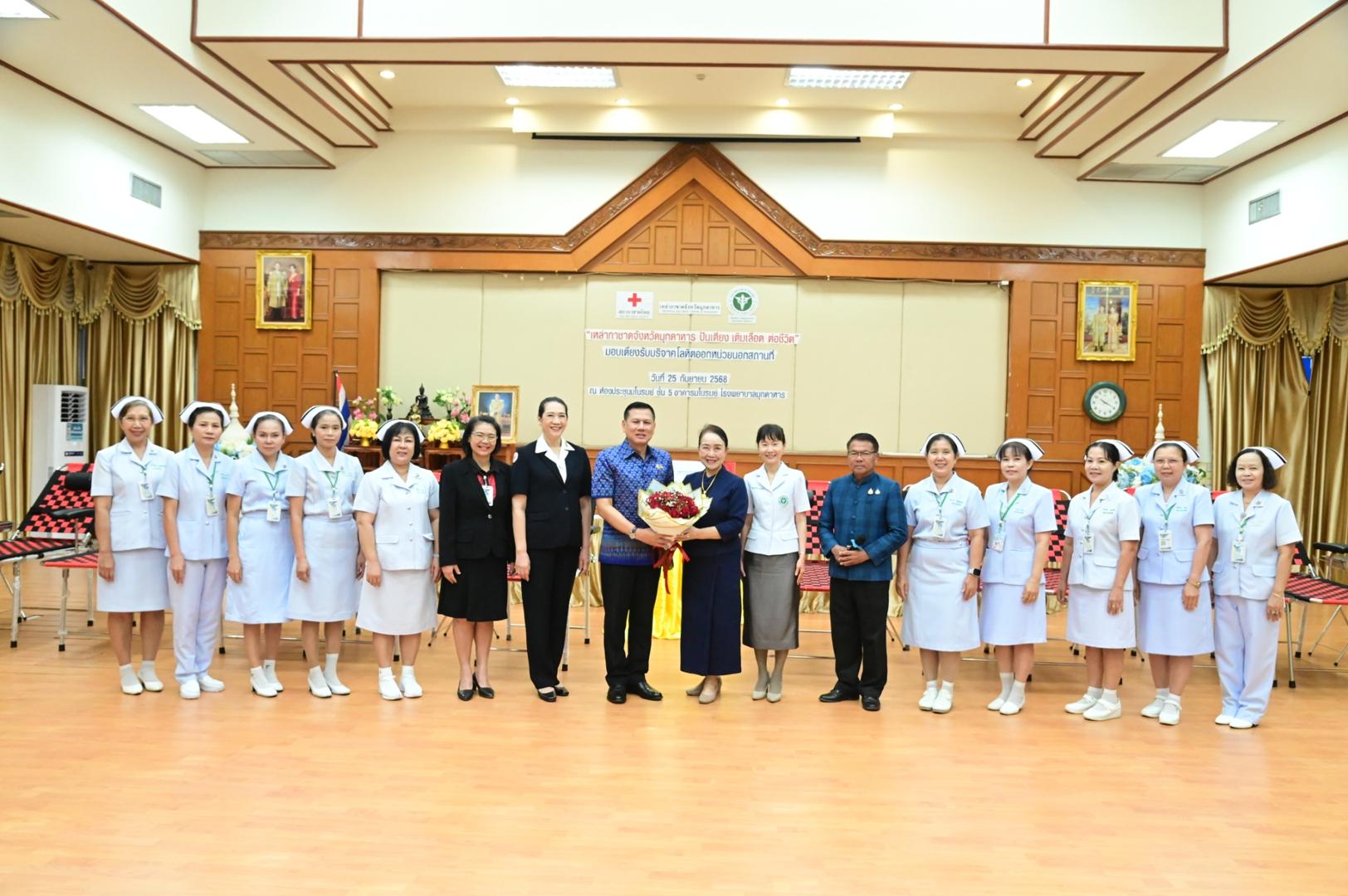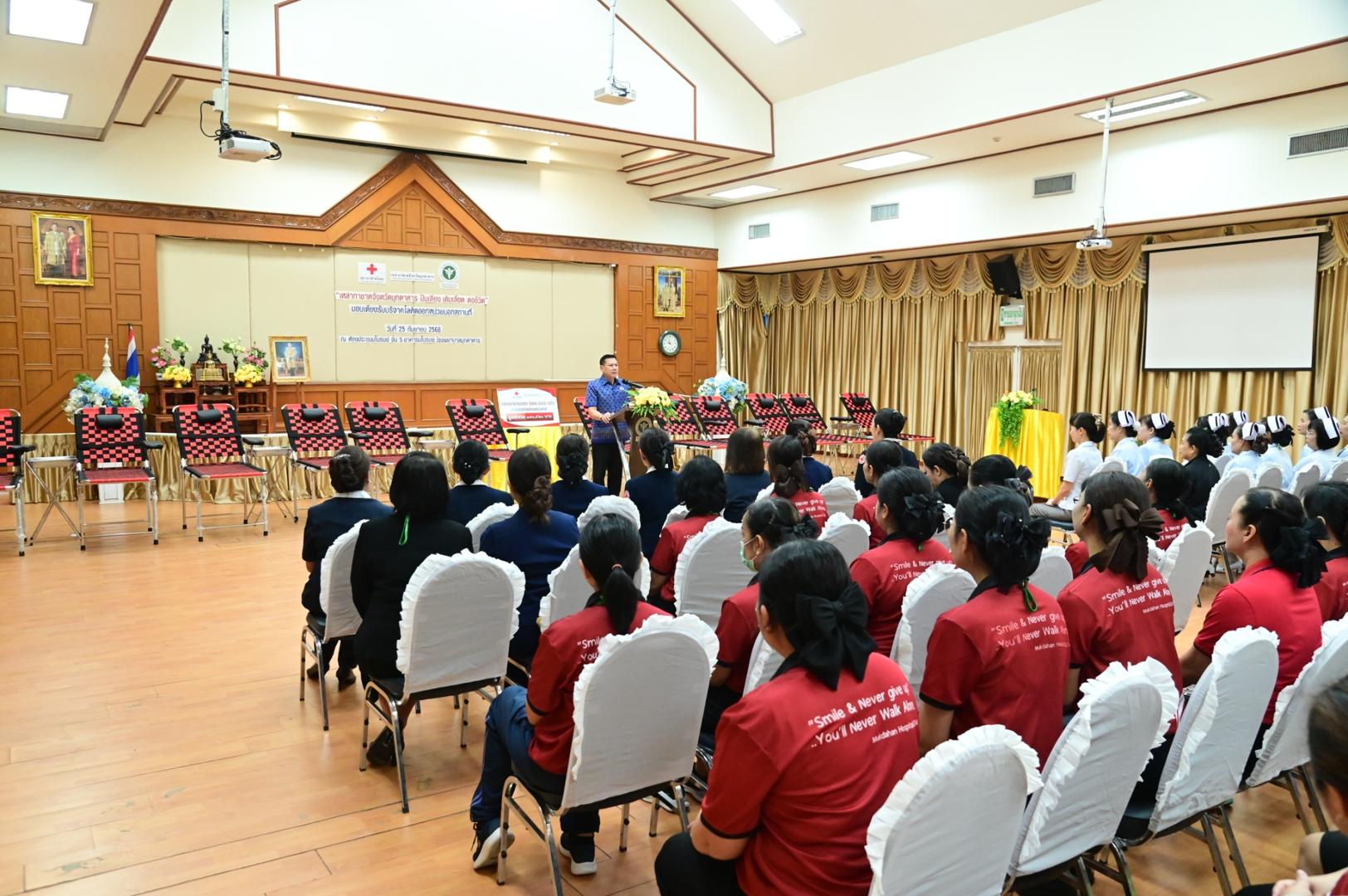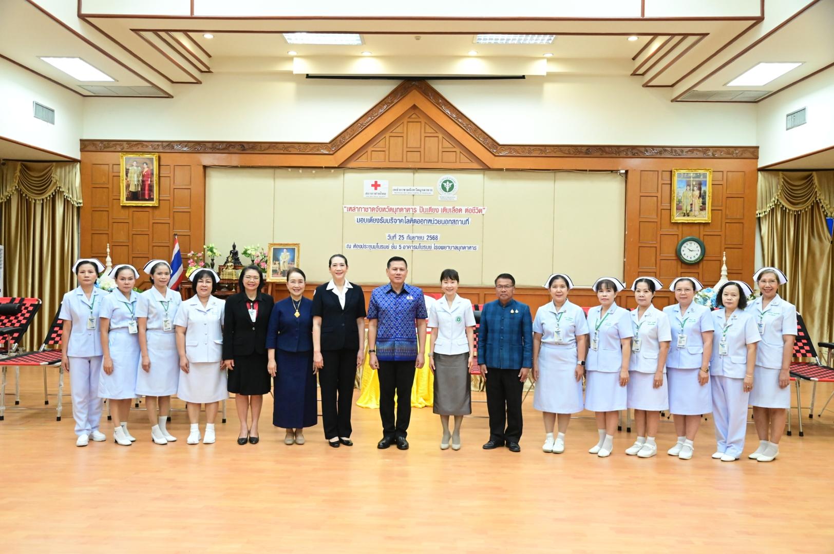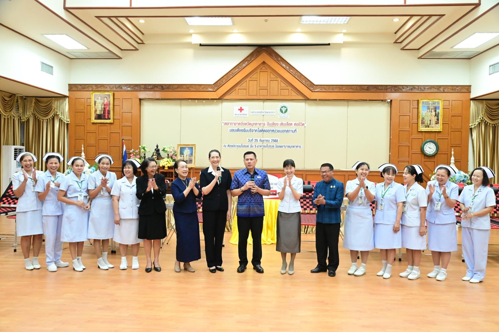 โรงพยาบาลมุกดาหารจัดพิธีรับมอบเตียงรับบริจาคโลหิตออกหน่วยนอกสถานที่ ตามโครงการ “เหล่ากาชาดจังหวัดมุกดาหาร ปันเตียง เติมเลือด ต่อชีวิต”