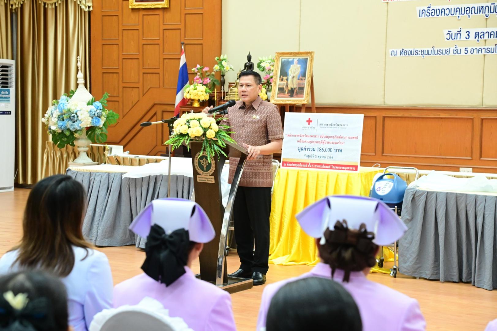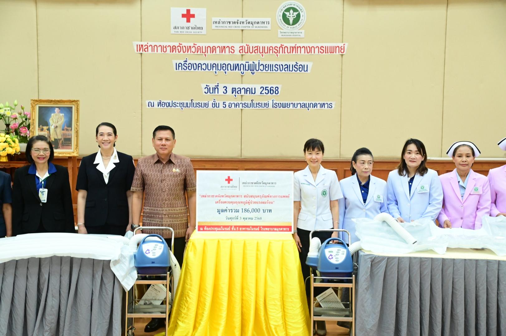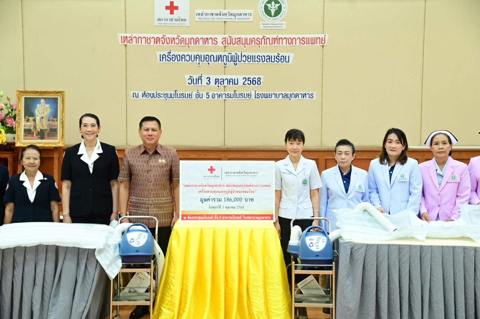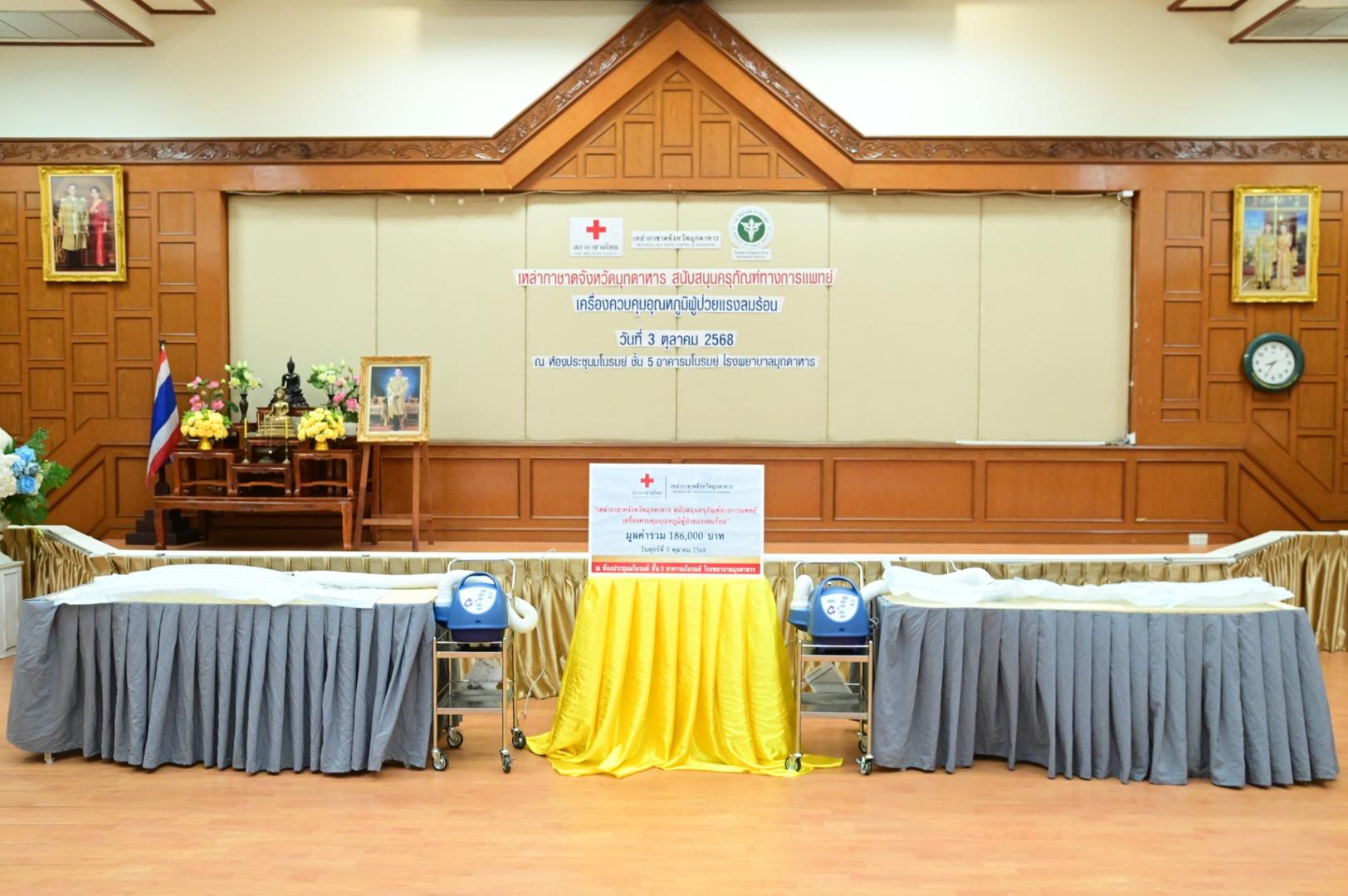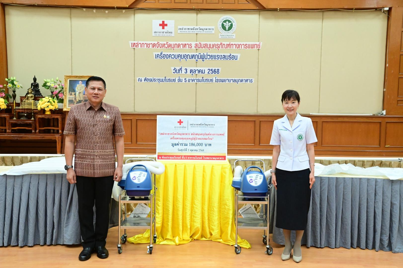 ได้มอบครุภัณฑ์ทางการแพทย์ เครื่องควบคุมอุณหภูมิผู้ป่วยแรงลมร้อน จำนวน 2 เครื่อง รวมมูลค่า 186,000 บาท