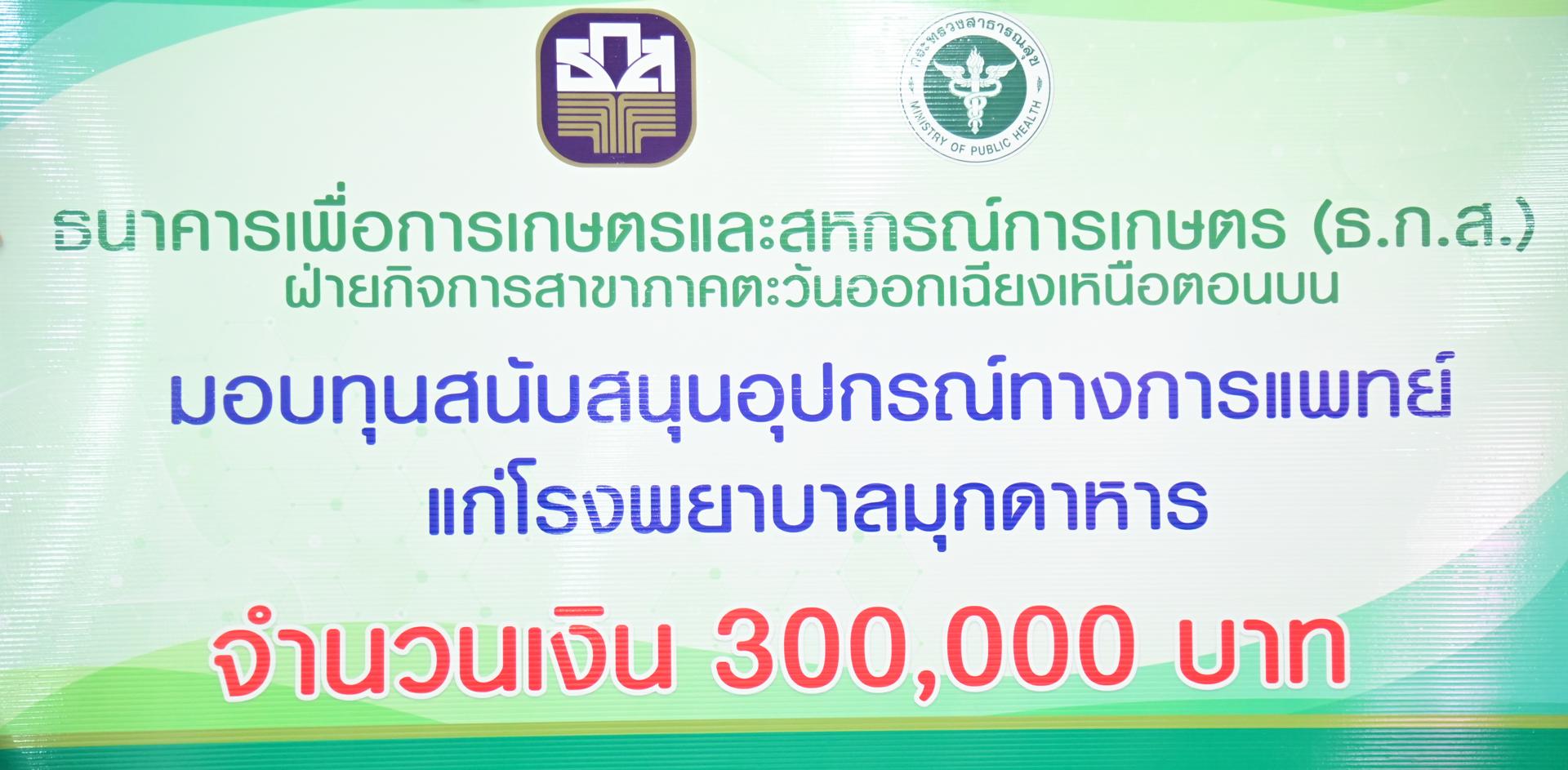 โรงพยาบาลมุกดาหาร ร่วมเป็นเจ้าภาพทอดกฐินสามัคคี ธ.ก.ส.และรับมอบเงินสนับสนุนอุปกรณ์ทางการแพทย์