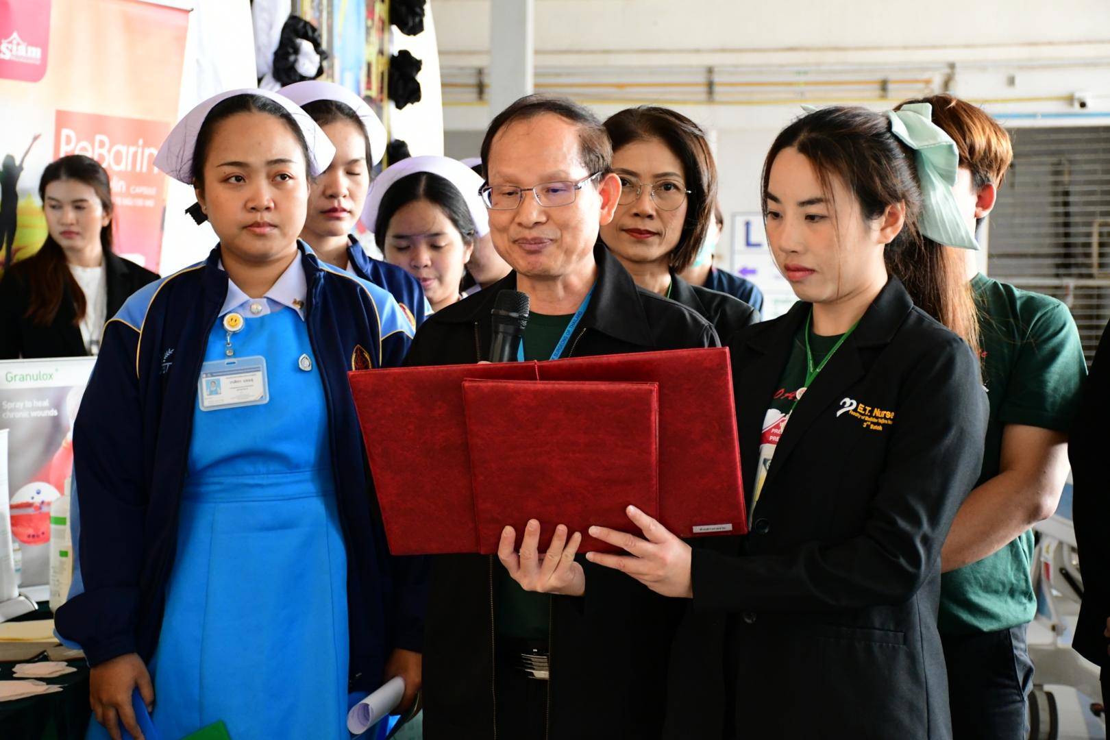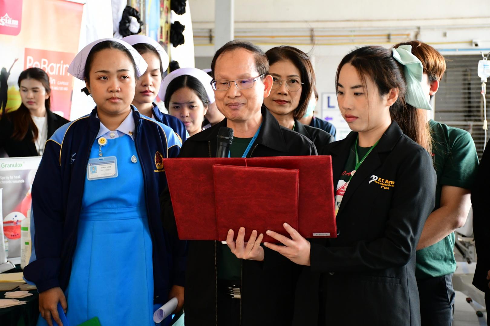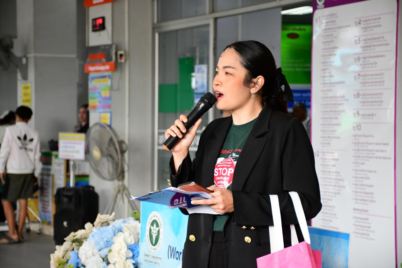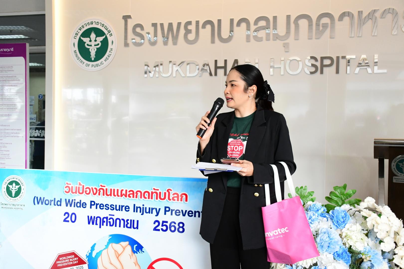 แพทย์หญิงนภาพร เกียรติดำรง ผู้อำนวยการโรงพยาบาลมุกดาหาร มอบหมายให้นายแพทย์วิลาศ นรินทร์ รองผู้อำนวยการฝ่ายการแพทย์ เป็นประธานเปิดกิจกรรม พร้อมด้วยนายแพทย์อนุชิต กุลวงษ์ หัวหน้ากลุ่มงานศัลยกรรม กล่าวรายงานในการจัดกิจกรรม วันรณรงค์ป้องกันแผลกดทับโลก (Worldwide Pressure Injury Prevention Day) ประจำปี 2568