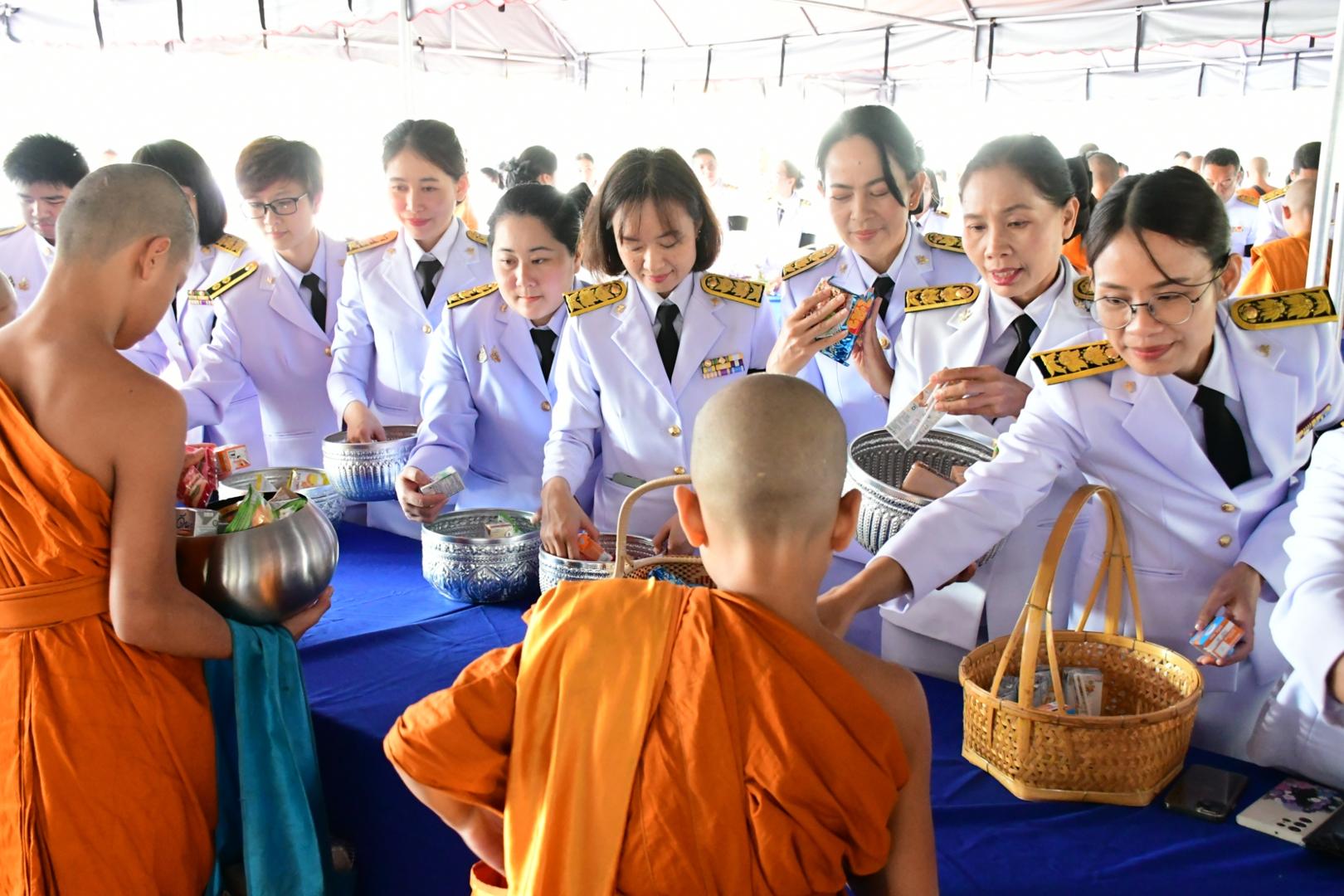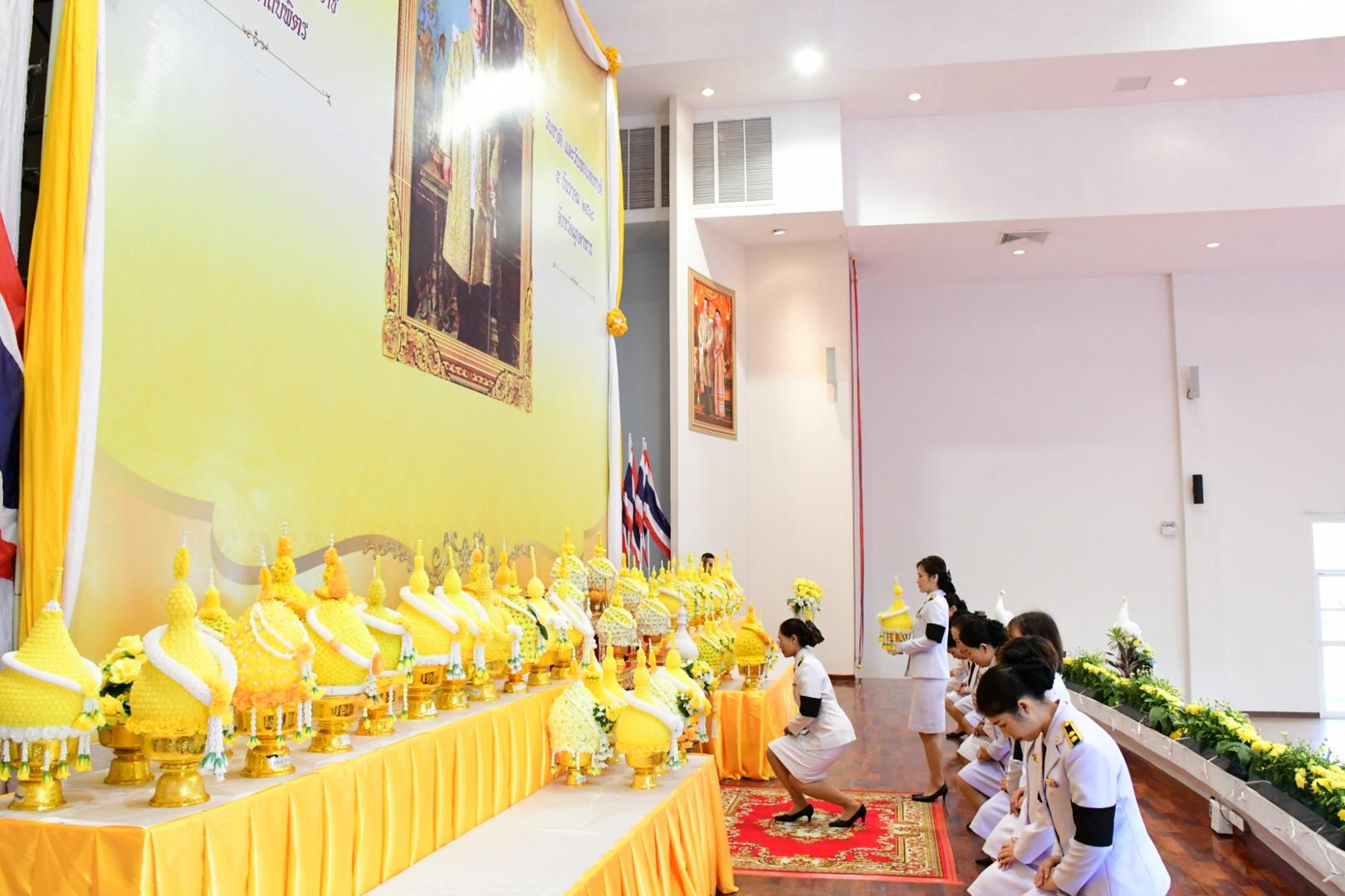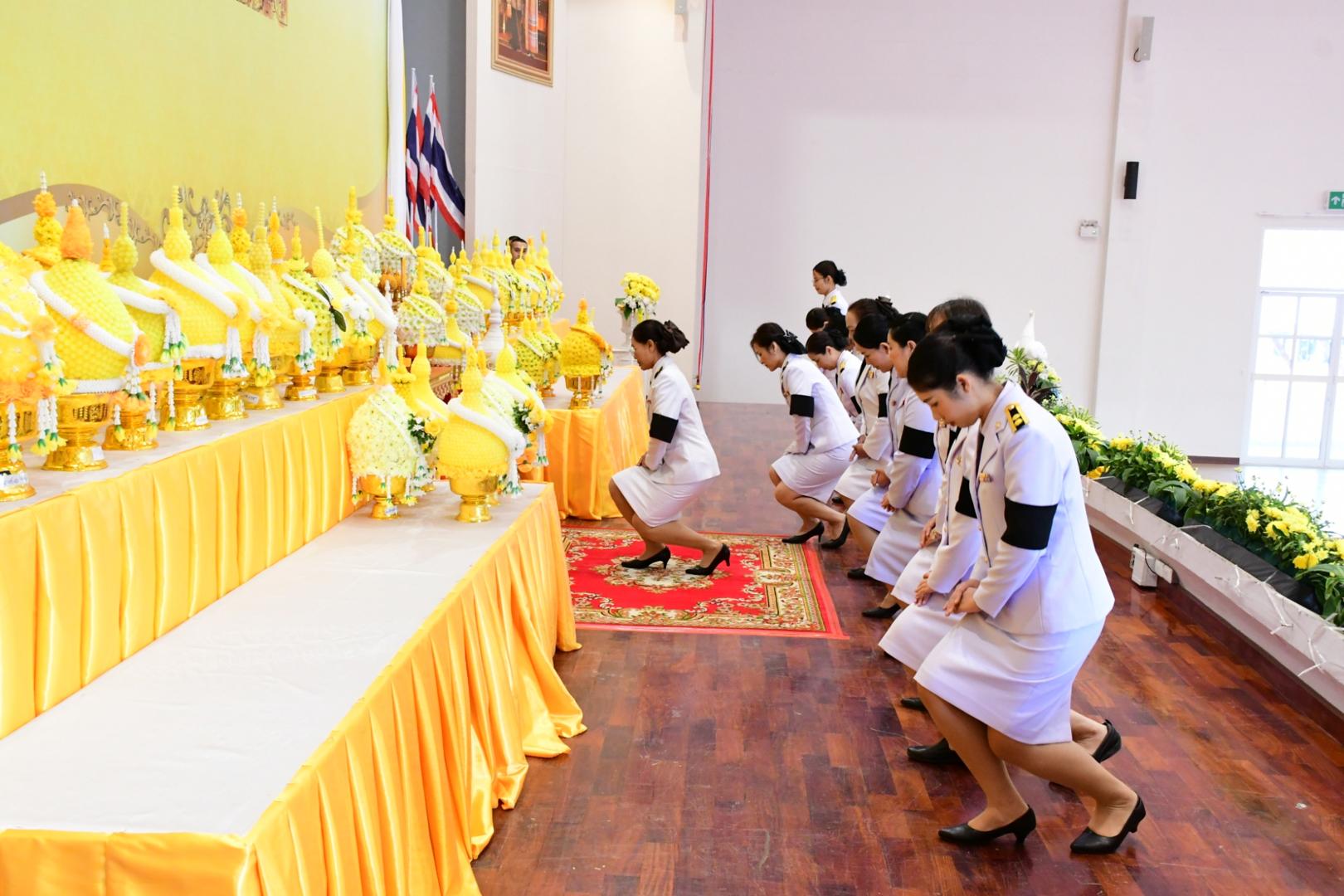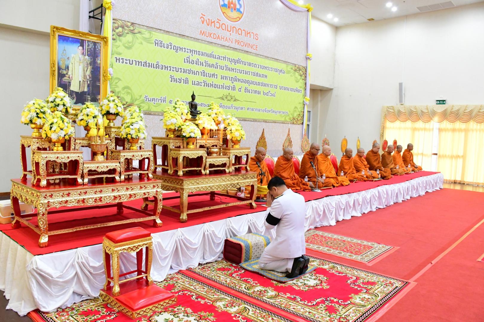 แพทย์หญิงนภาพร เกียรติดำรง ผู้อำนวยการโรงพยาบาลมุกดาหาร มอบหมายให้นางแสงไทย ไตรยวงค์ รองผู้อำนวยการฝ่ายการพยาบาล พร้อมด้วยคณะผู้บริหารและเจ้าหน้าที่โรงพยาบาลมุกดาหาร เข้าร่วมพิธีเจริญพระพุทธมนต์ และทำบุญตักบาตรพระสงฆ์จำนวน 59 รูป เพื่อถวายเป็นพระราชกุศล ณ ห้องแก้วมุกดา ศาลากลางจังหวัดมุกดาหาร