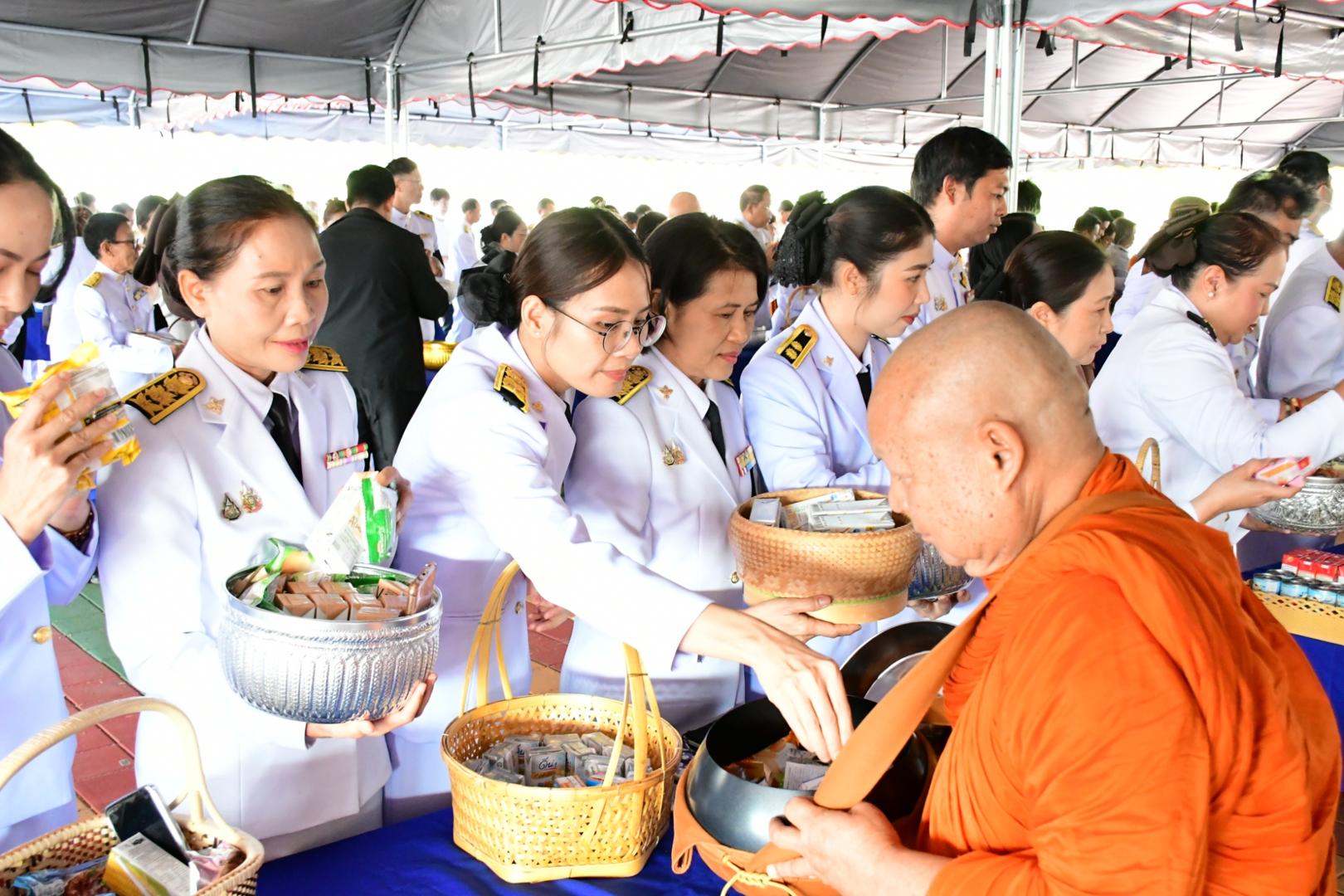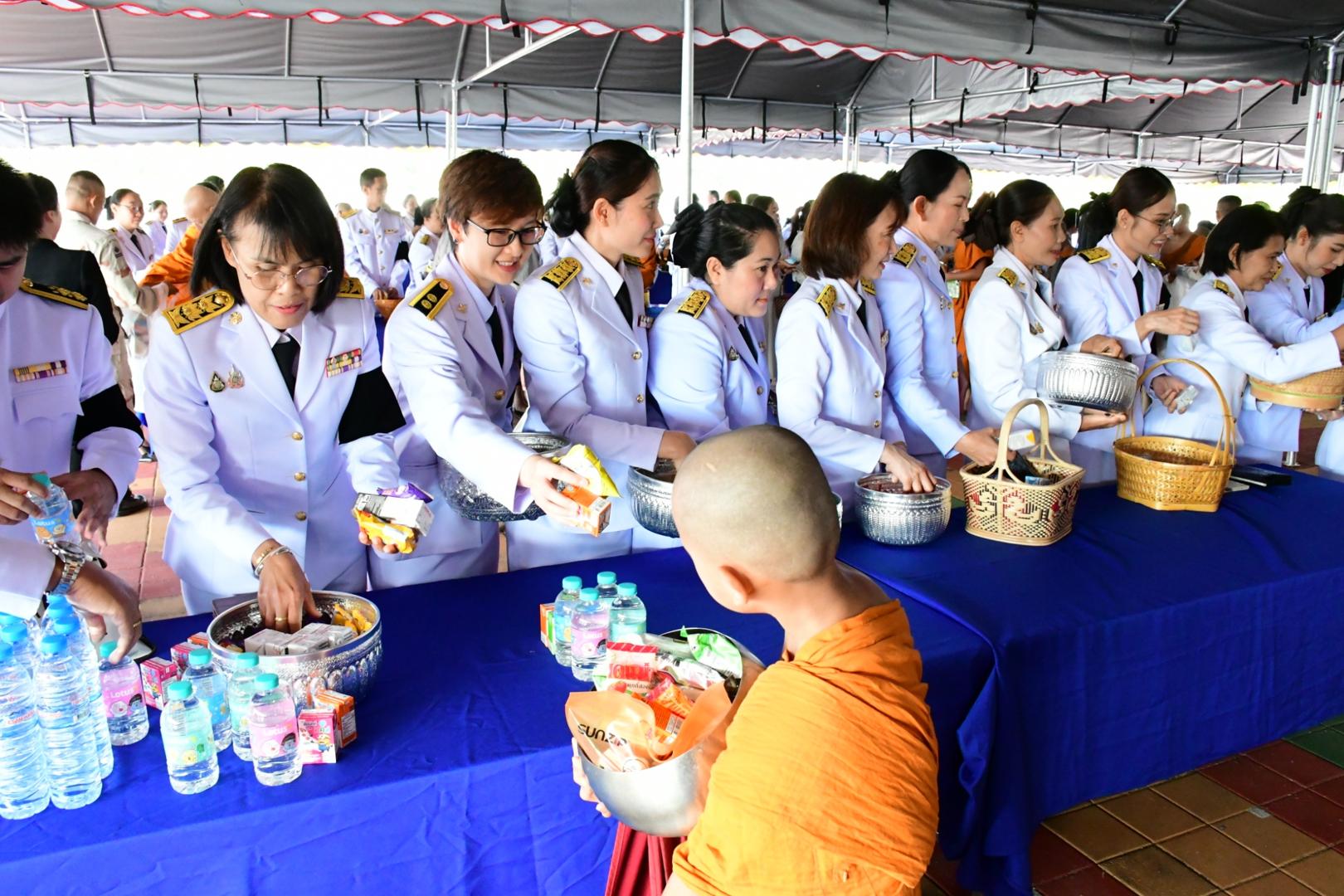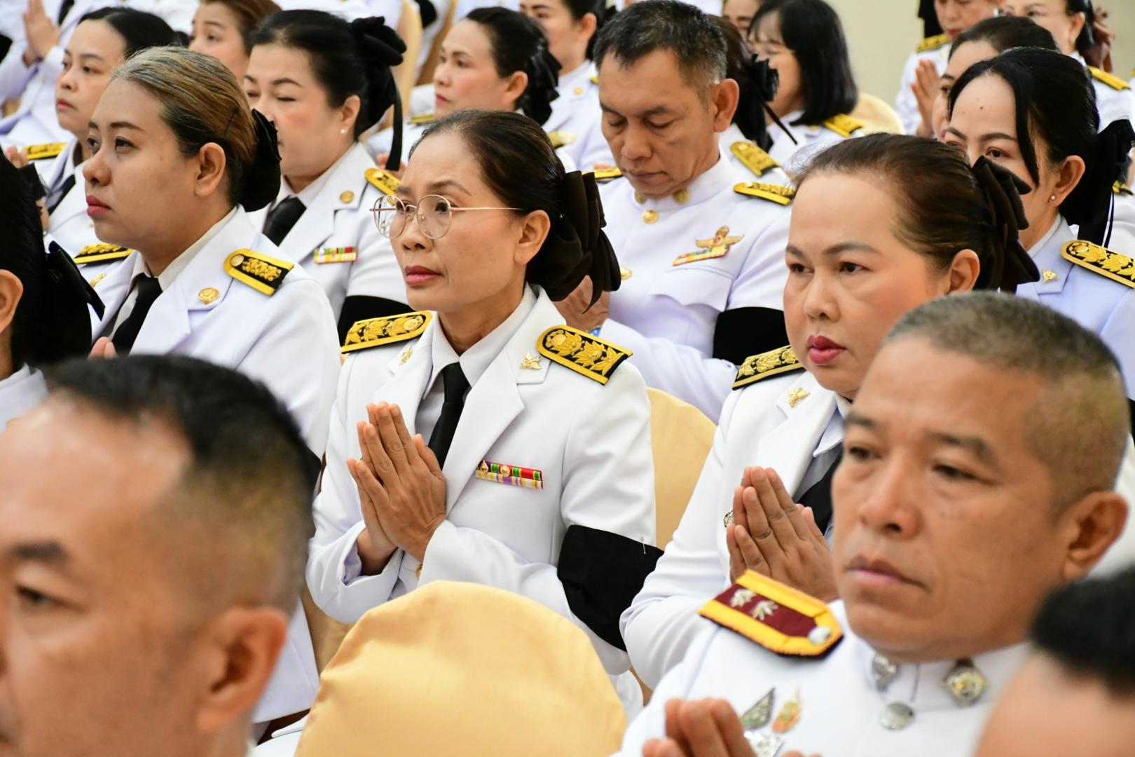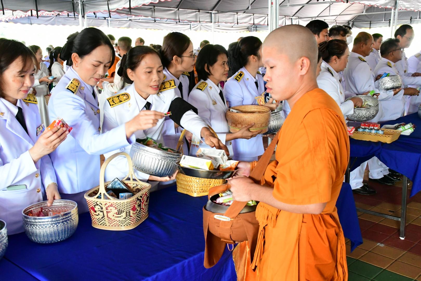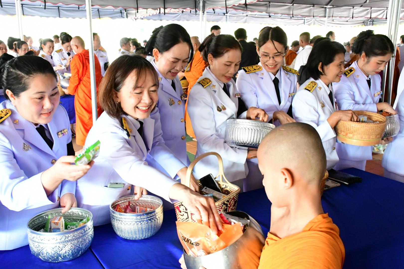 แพทย์หญิงนภาพร เกียรติดำรง ผู้อำนวยการโรงพยาบาลมุกดาหาร มอบหมายให้นางแสงไทย ไตรยวงค์ รองผู้อำนวยการฝ่ายการพยาบาล พร้อมด้วยคณะผู้บริหารและเจ้าหน้าที่โรงพยาบาลมุกดาหาร เข้าร่วมพิธีเจริญพระพุทธมนต์ และทำบุญตักบาตรพระสงฆ์จำนวน 59 รูป เพื่อถวายเป็นพระราชกุศล ณ ห้องแก้วมุกดา ศาลากลางจังหวัดมุกดาหาร