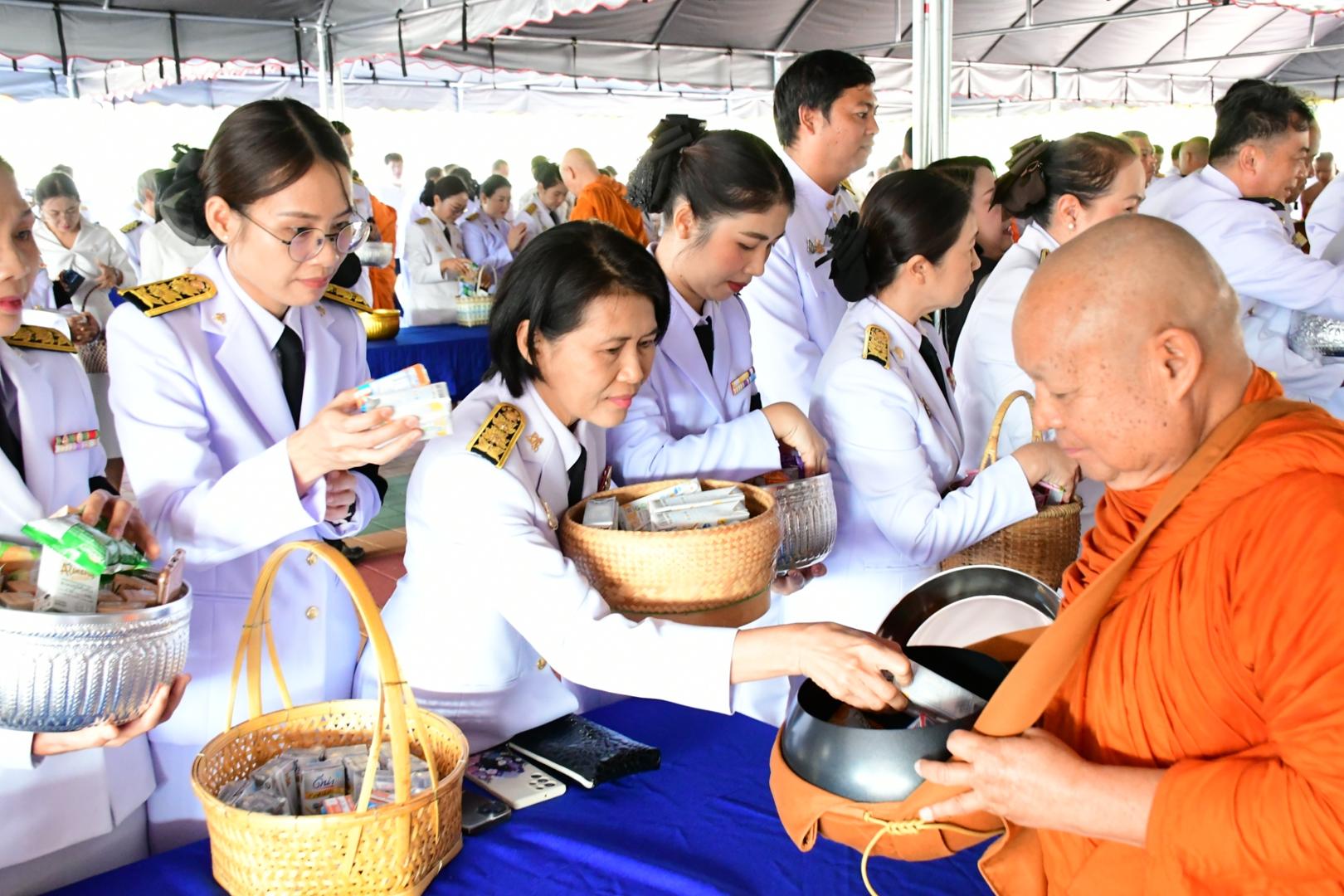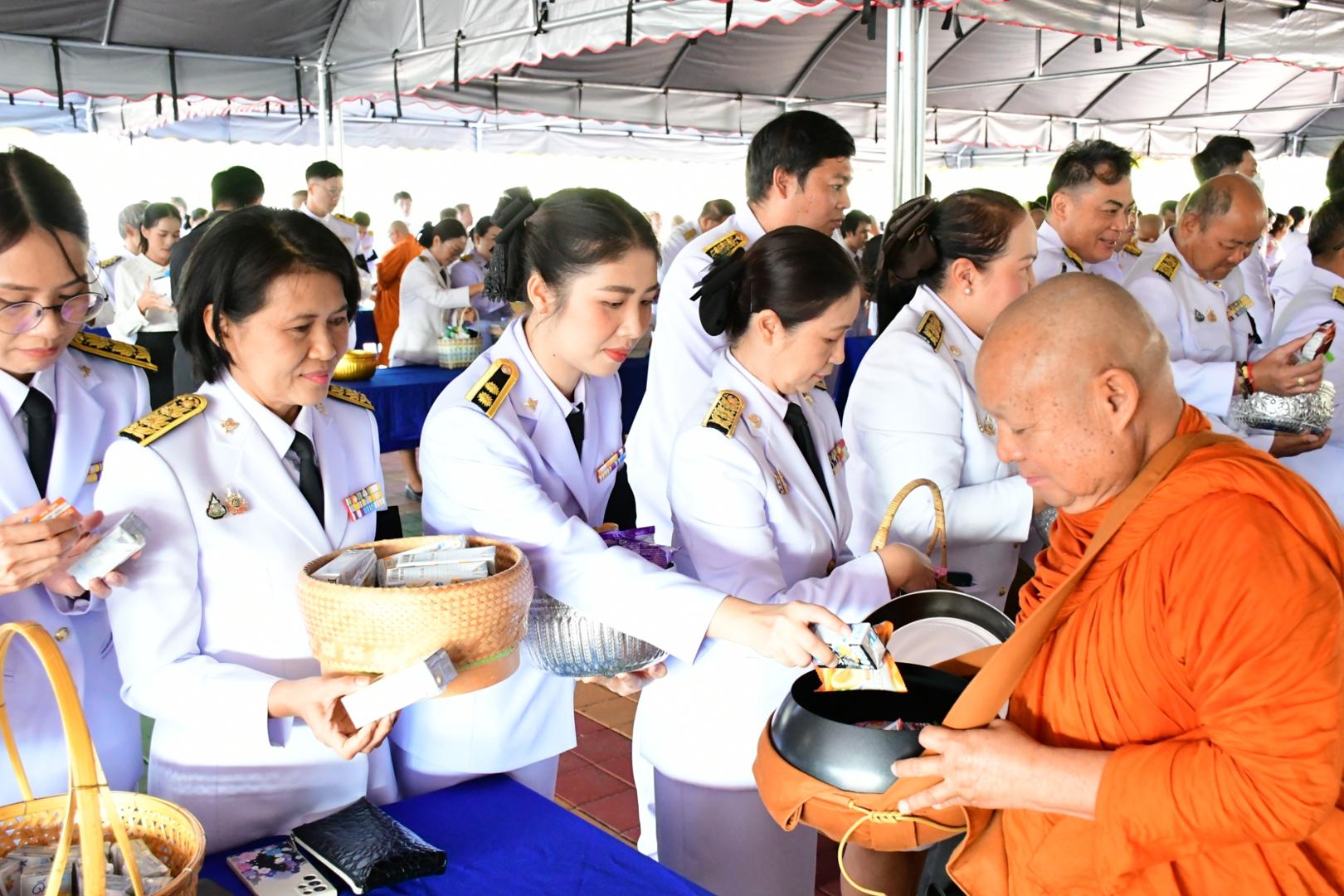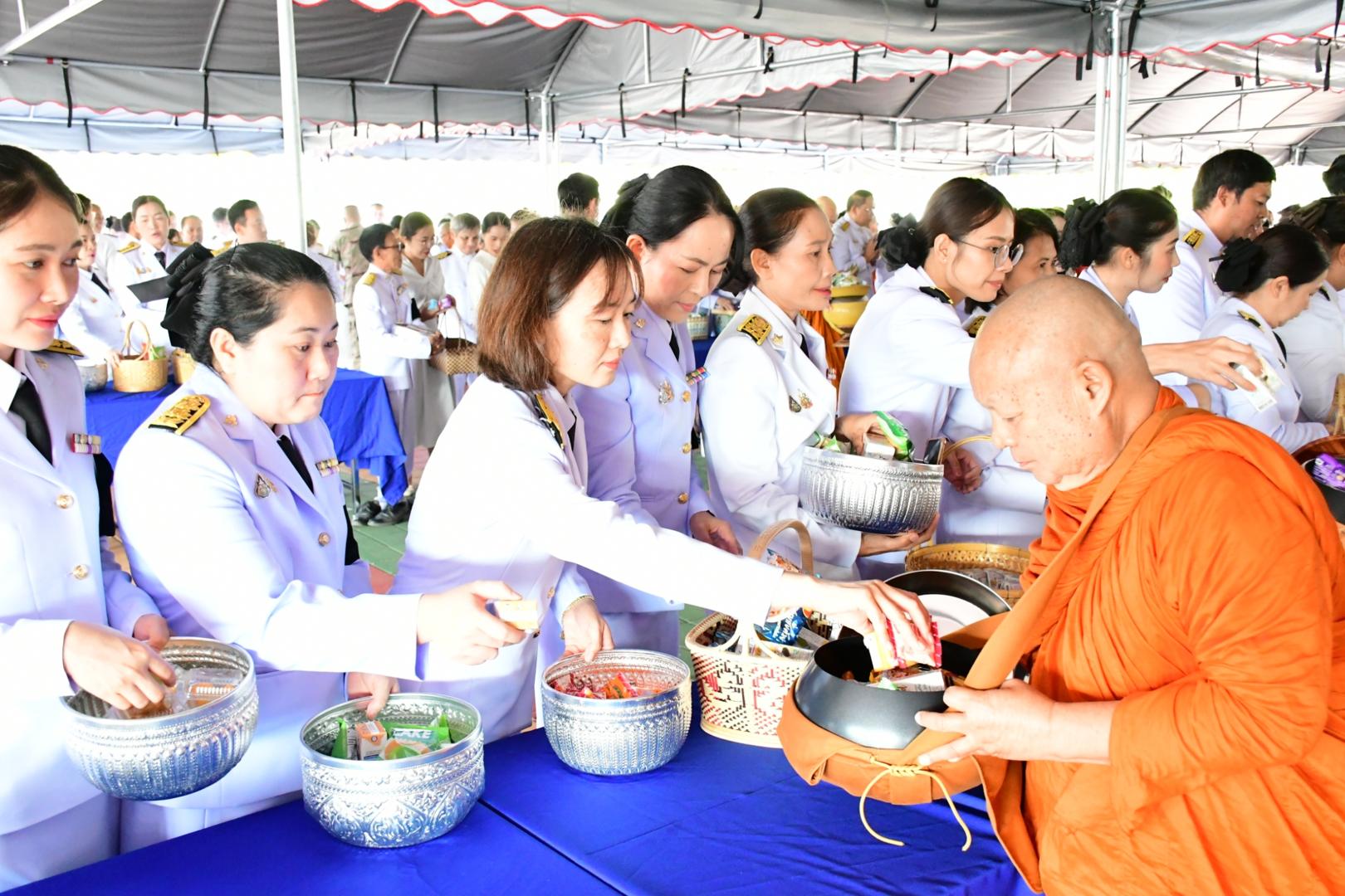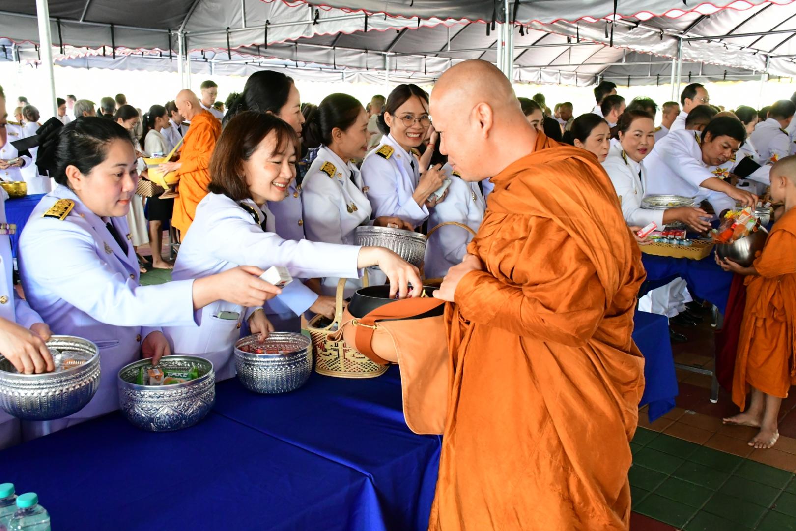 แพทย์หญิงนภาพร เกียรติดำรง ผู้อำนวยการโรงพยาบาลมุกดาหาร มอบหมายให้นางแสงไทย ไตรยวงค์ รองผู้อำนวยการฝ่ายการพยาบาล พร้อมด้วยคณะผู้บริหารและเจ้าหน้าที่โรงพยาบาลมุกดาหาร เข้าร่วมพิธีเจริญพระพุทธมนต์ และทำบุญตักบาตรพระสงฆ์จำนวน 59 รูป เพื่อถวายเป็นพระราชกุศล ณ ห้องแก้วมุกดา ศาลากลางจังหวัดมุกดาหาร
