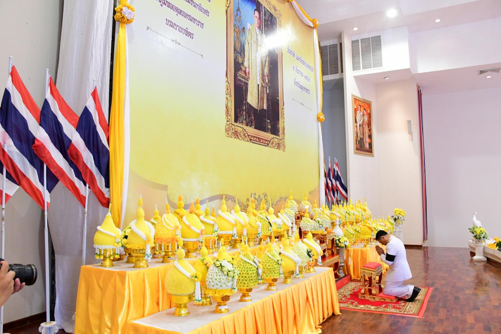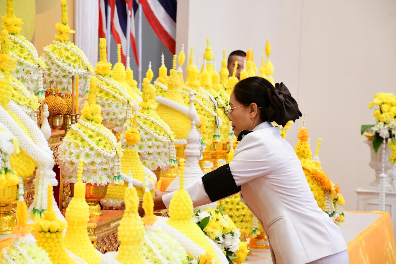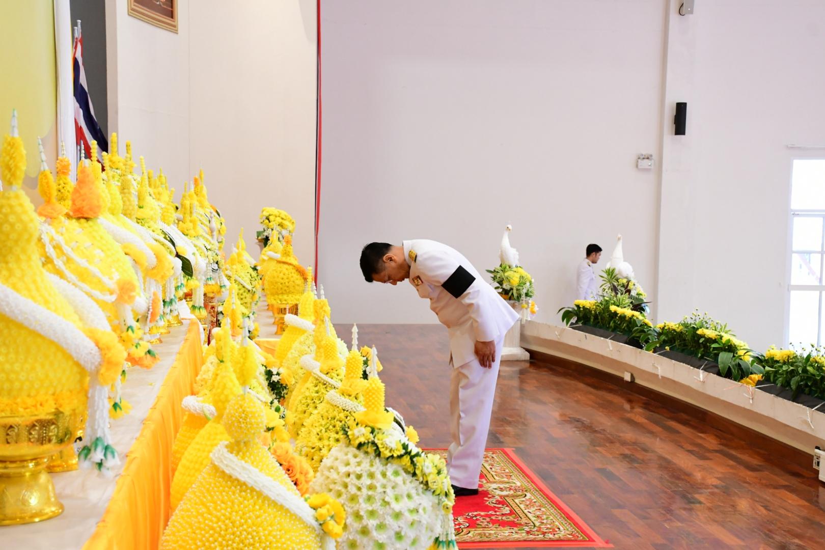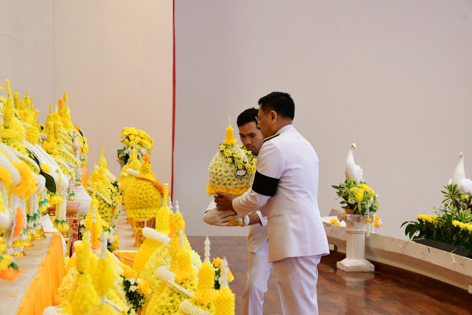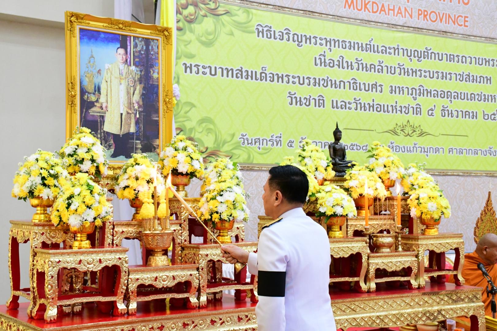 จากนั้น ได้ร่วมพิธีวางพุ่มดอกไม้ถวายบังคม เพื่อน้อมรำลึกในพระมหากรุณาธิคุณอันหาที่สุดมิได้ โดยมี นายวรญาณ บุญณราช ผู้ว่าราชการจังหวัดมุกดาหาร เป็นประธานในพิธี