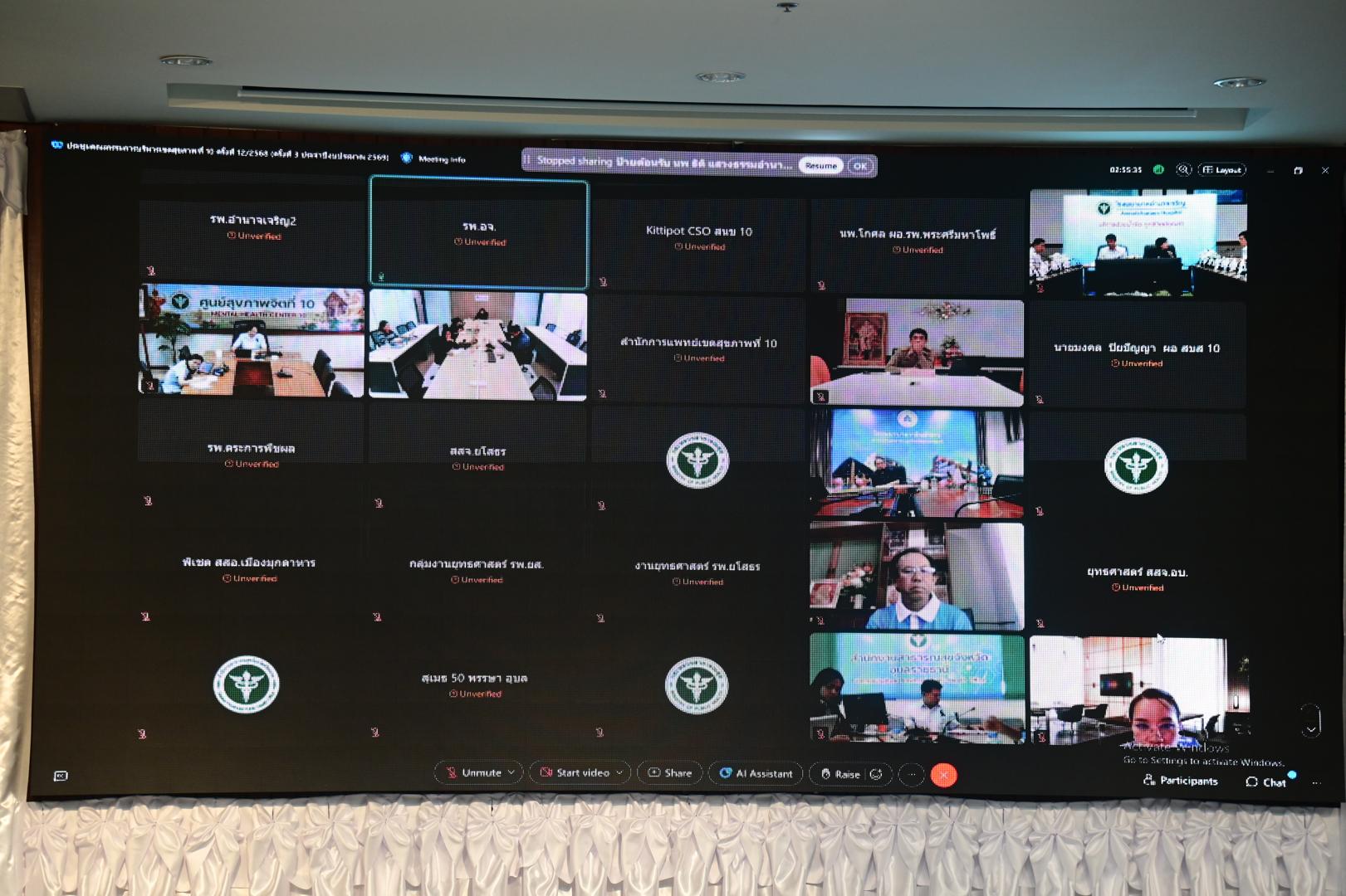 โดยมีนายแพทย์ธิติ แสวงธรรม ผู้ตรวจราชการกระทรวงสาธารณสุข เขตสุขภาพที่ 10 เป็นประธาน พร้อมด้วยแพทย์หญิงอุไรวรรณ จำนรรจ์สิริ สาธารณสุขนิเทศก์ และผู้อำนวยการสำนักงานเขตสุขภาพที่ 10 ร่วมประชุม และผ่านระบบประชุมทางไกล VDO Conference เพื่อขับเคลื่อนนโยบายสำคัญของกระทรวงสาธารณสุขในการพัฒนาระบบบริการสุขภาพระดับเขต