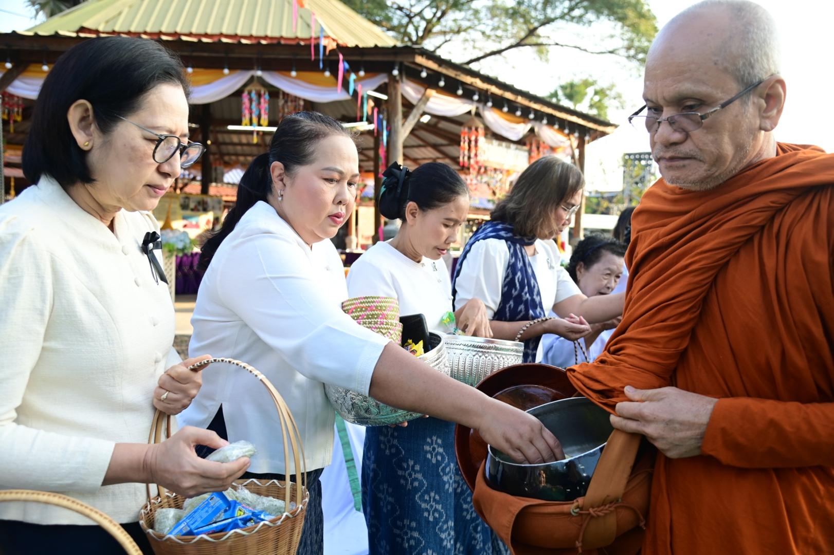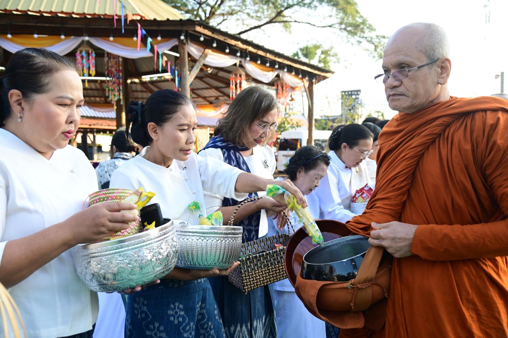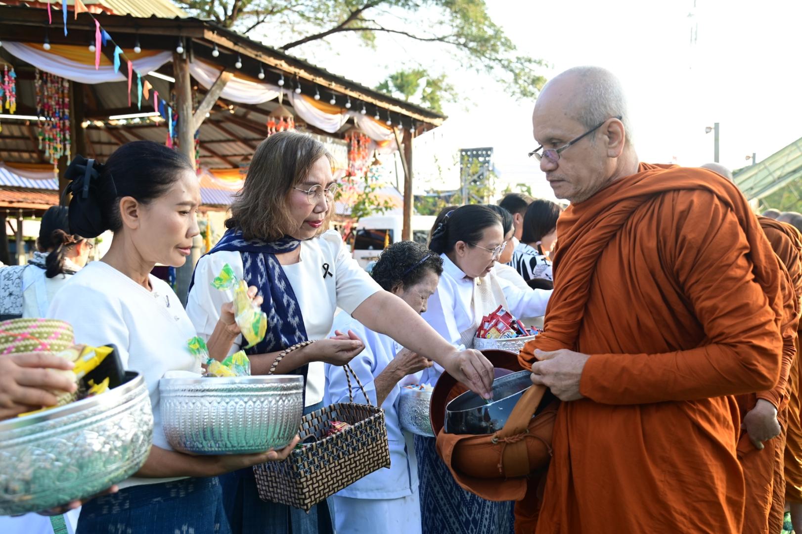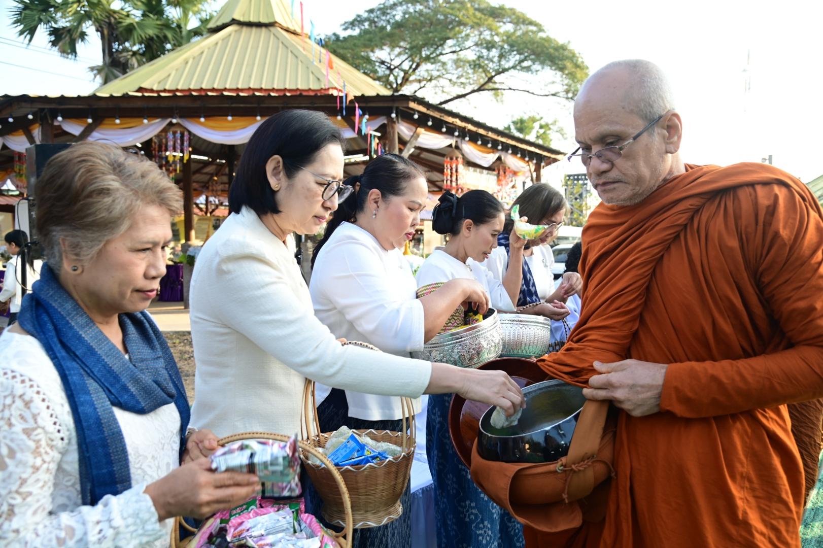 โรงพยาบาลมุกดาหารร่วมพิธีทำบุญตักบาตรประเพณีบุญข้าวยาคู บูชาพระบรมสารีริกธาตุ จังหวัดมุกดาหาร