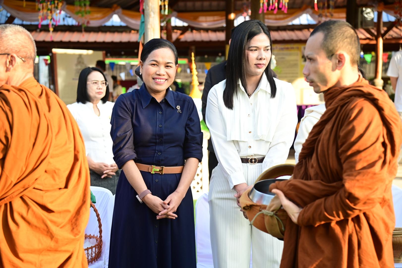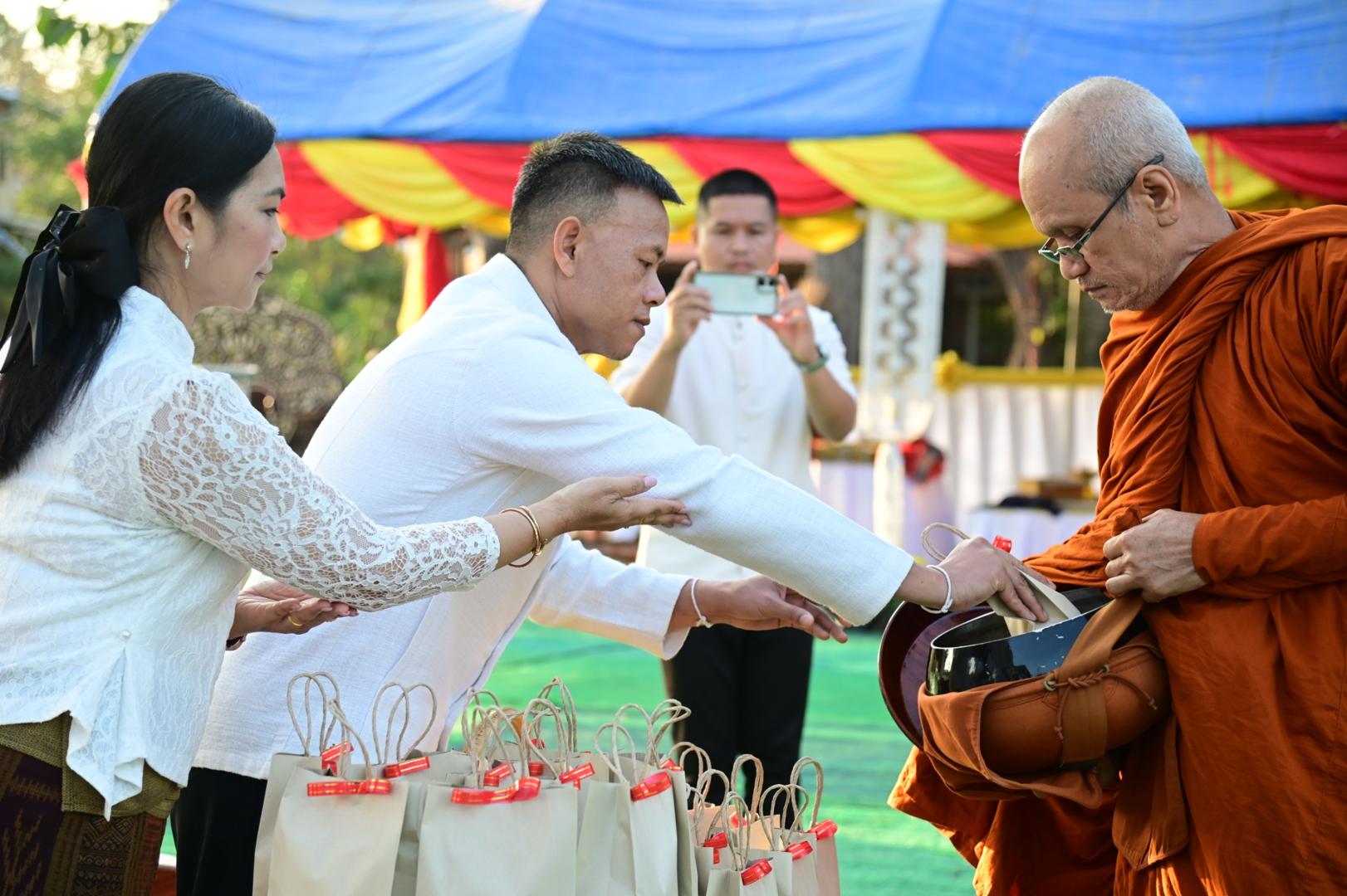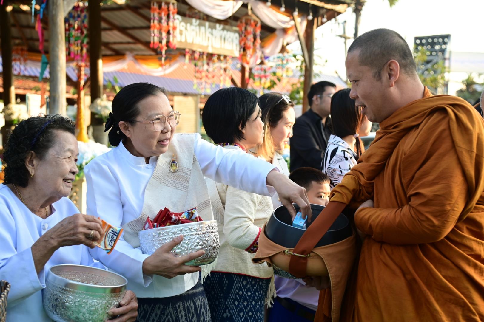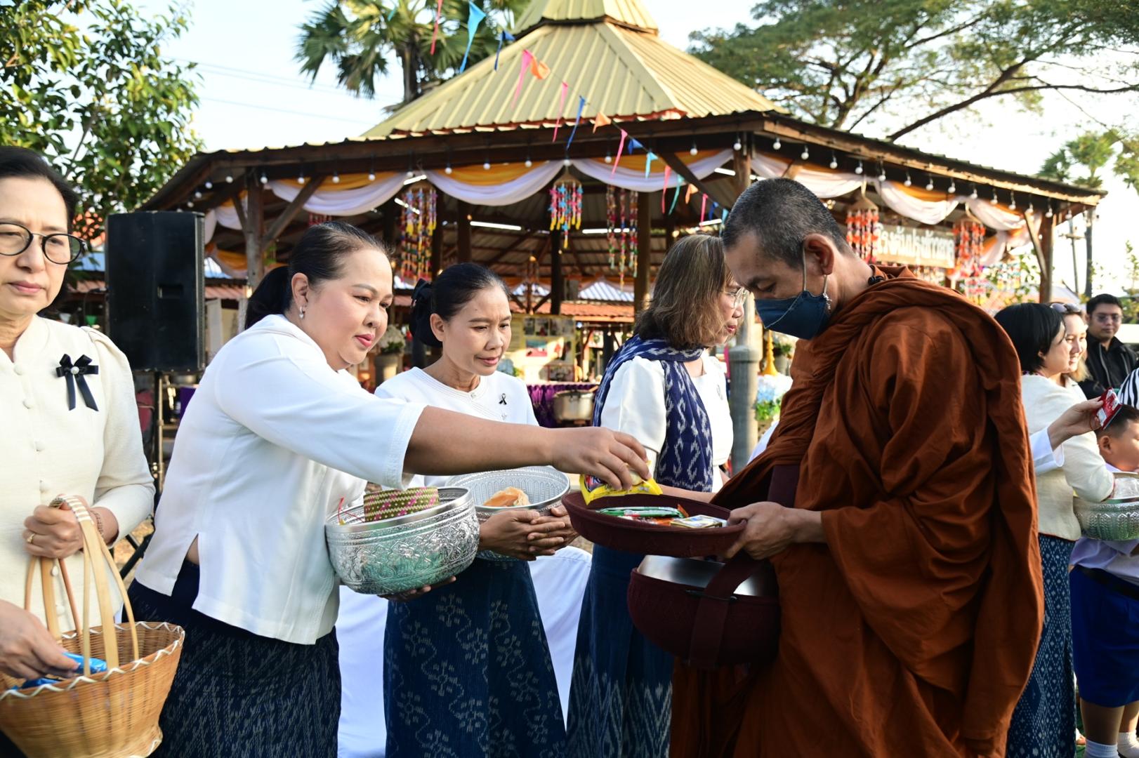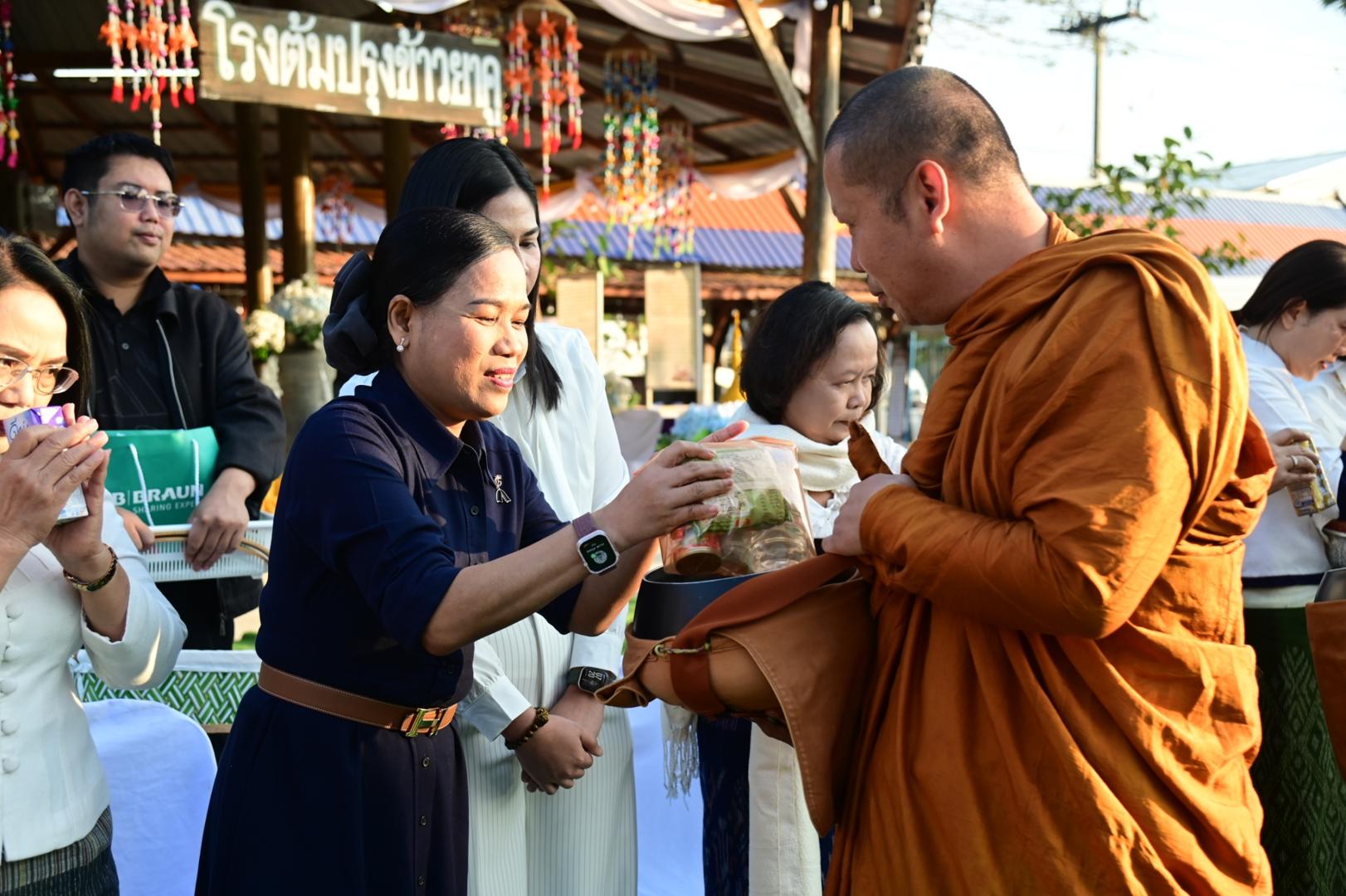 โรงพยาบาลมุกดาหารร่วมพิธีทำบุญตักบาตรประเพณีบุญข้าวยาคู บูชาพระบรมสารีริกธาตุ จังหวัดมุกดาหาร