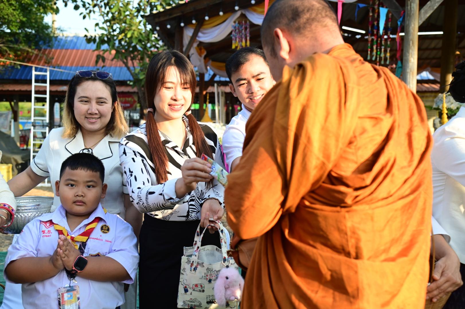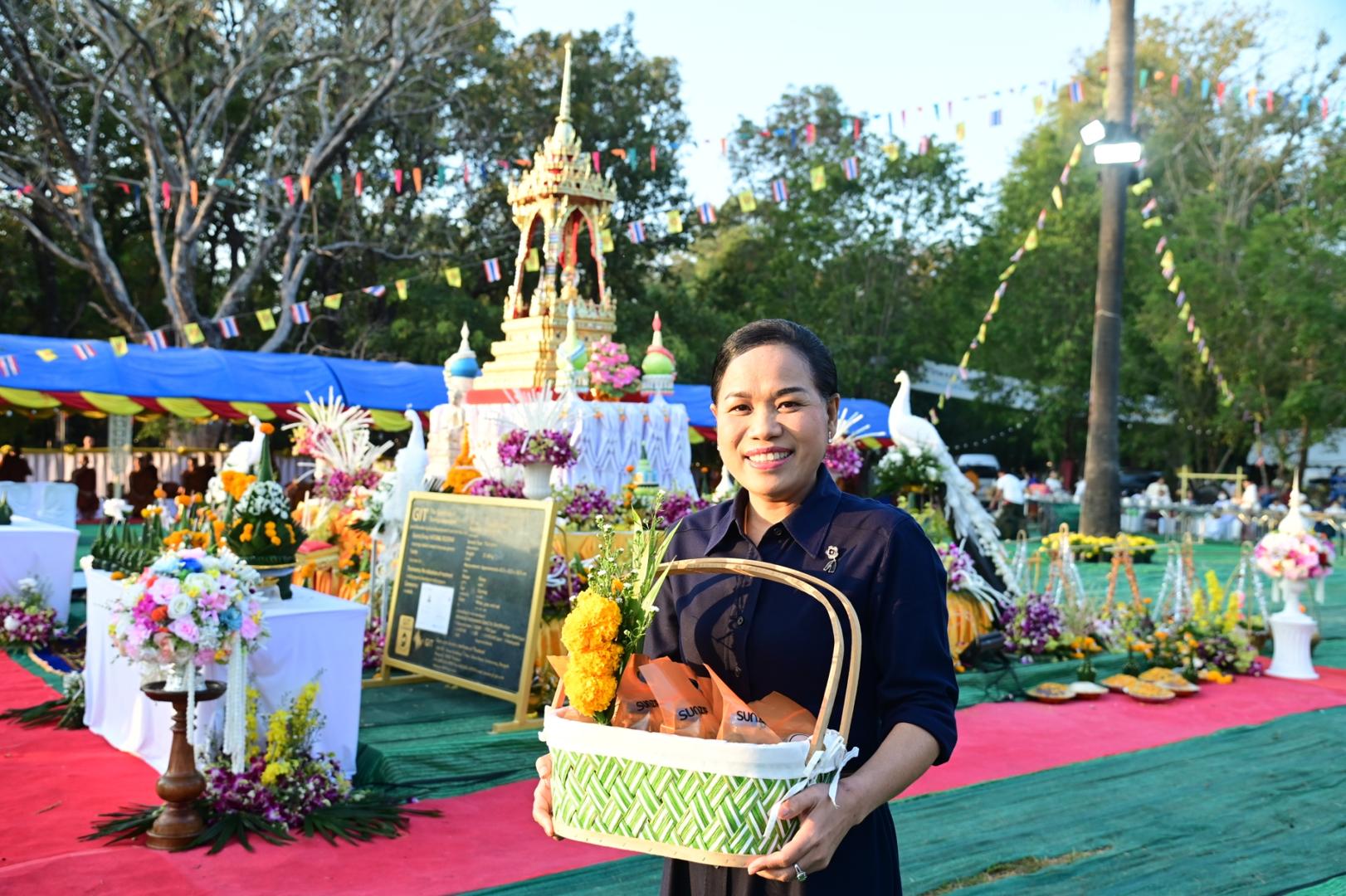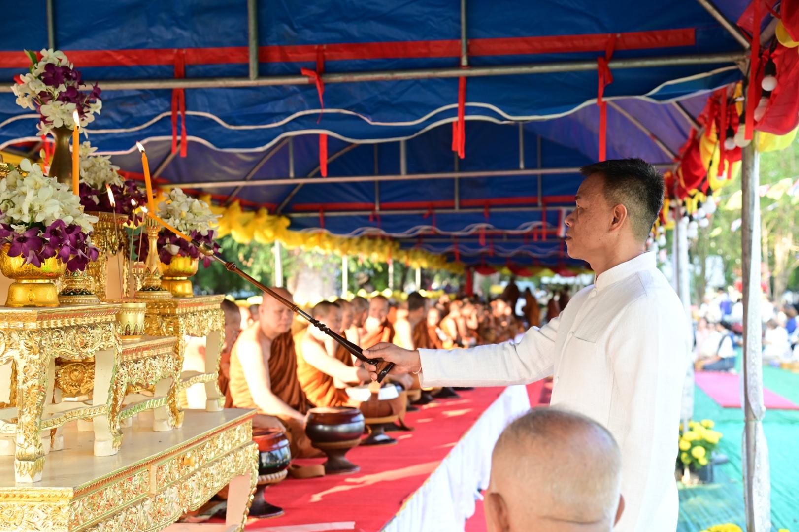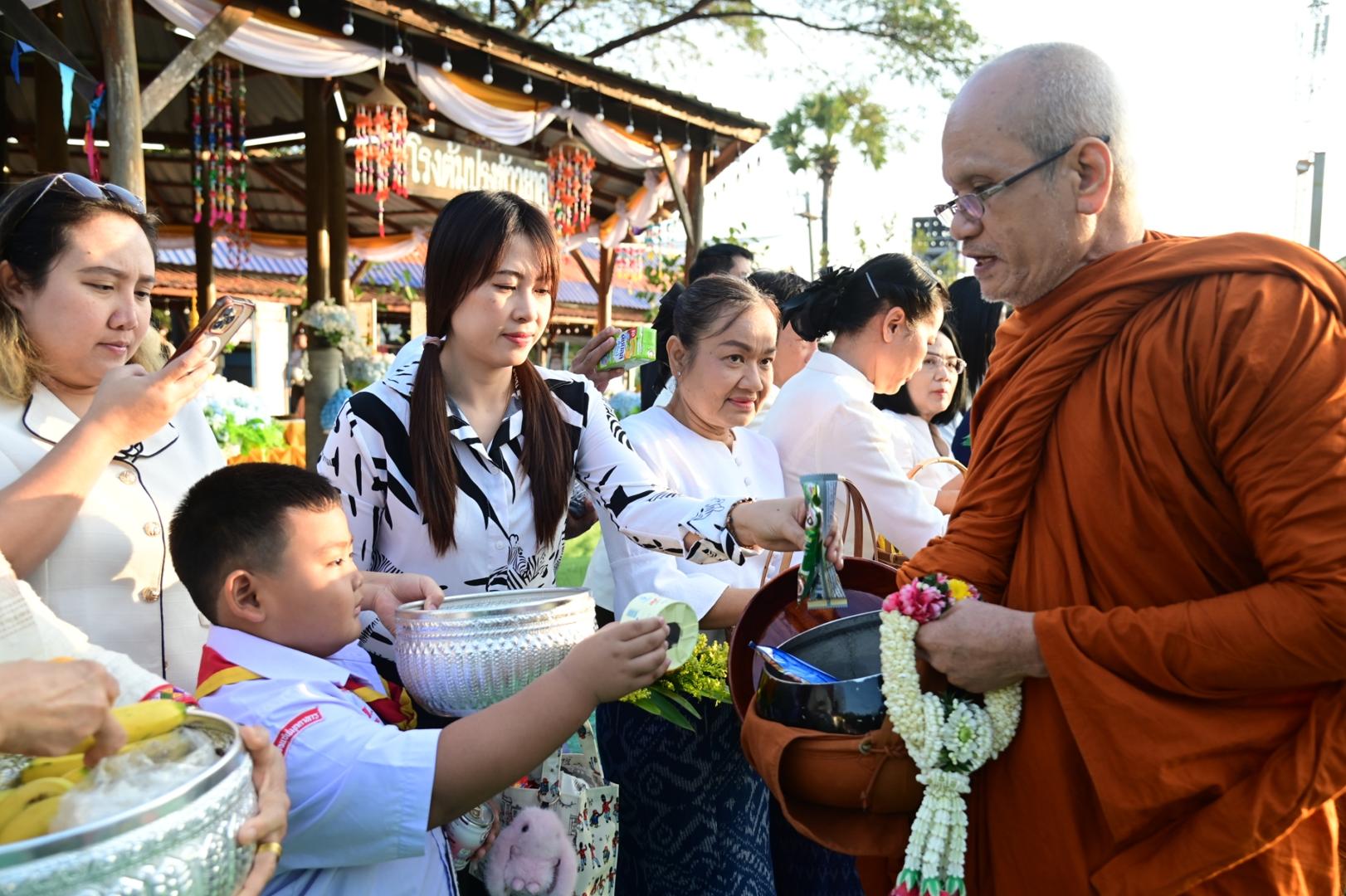 โรงพยาบาลมุกดาหารร่วมพิธีทำบุญตักบาตรประเพณีบุญข้าวยาคู บูชาพระบรมสารีริกธาตุ จังหวัดมุกดาหาร