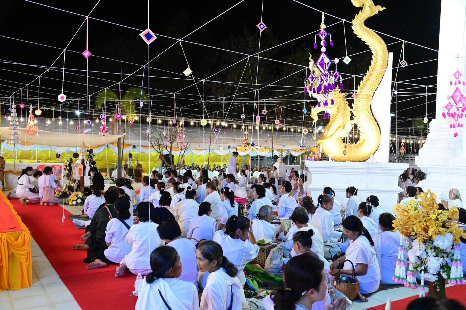 โดยร่วมถวายบูชาศิลปวัฒนธรรมพื้นบ้าน เข้าพิธีบวชชีพราหมณ์ รับฟังพระธรรมเทศนา 1 กัณฑ์ พิธีเจริญพระพุทธมนต์ ทำวัตรเย็น และพิธีจุดเทียนชัย สวดพุทธาภิเษกตลอดทั้งคืน