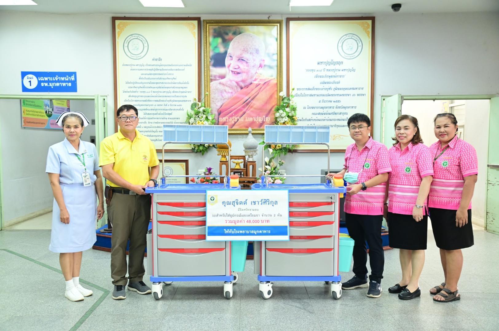 คุณสุจิตต์ เชาว์ศิริกุล มีจิตศรัทธามอบรถสำหรับใส่อุปกรณ์และเตรียมยา ให้กับโรงพยาบาลมุกดาหาร