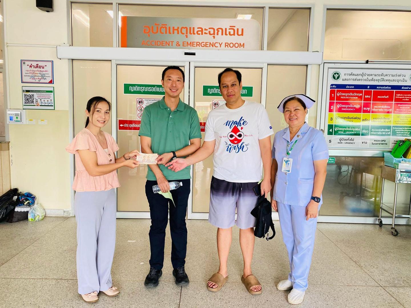 คุณศรัณ ธีระภัทรานันท์ คุณนราวุธ นาคนาคม คุณปวันรัตน์ คูเปี่ยมรักษ์ มีจิตศรัทธามอบเงินให้กับโรงพยาบาลมุกดาหาร