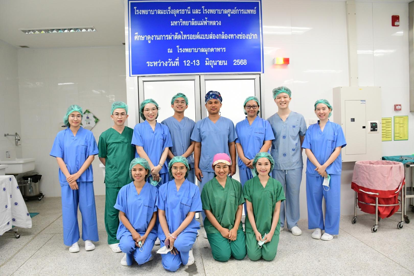 โรงพยาบาลมุกดาหาร ร่วมต้อนรับทีมแพทย์และบุคลากรทางการแพทย์ เข้าศึกษาดูงานการผ่าตัดไทรอยด์โดยการส่องกล้อง แผนกโสต ศอ นาสิก