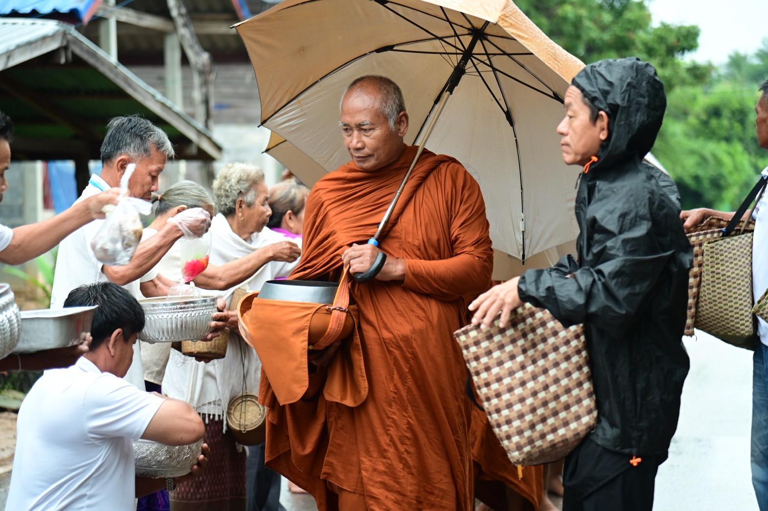 ร่วมกิจกรรม ผอ.ชวนทำบุญตักบาตรหลวงปู่อ้ม สุขกาโม วัดป่าภูผาผึ้ง อำเภอดงหลวง จังหวัดมุกดาหาร